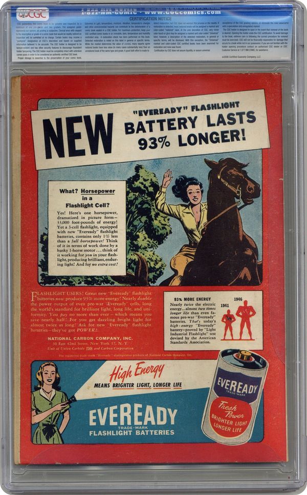 Cover pencils by Jack Burnley. Lois Lane, Superwoman!, script by Alvin Schwartz, pencils by John Sikela, inks by George Roussos; Lois believes Hocus and Pocus have given her super powers. Showdown on the Showboat starring Superman, Hugh Rowland, Captain George Golden, and Gilda Golden, script by Alvin Schwartz, pencils by John Sikela. Royal Crown Cola ad by Creig Flessel. Crime Key text story by Tex Wade. Handy Andy humor two-pager by Jack Farr. The Case of the Living Trophies, script by Jerry Siegel, pencils by John Sikela. Daffy & Doodle humor page by Lit-Win. 52 Pages, Full Color. Cover price $0.10. Grade: CGC 5.5 explanation of grade Condition: Used (collectible)