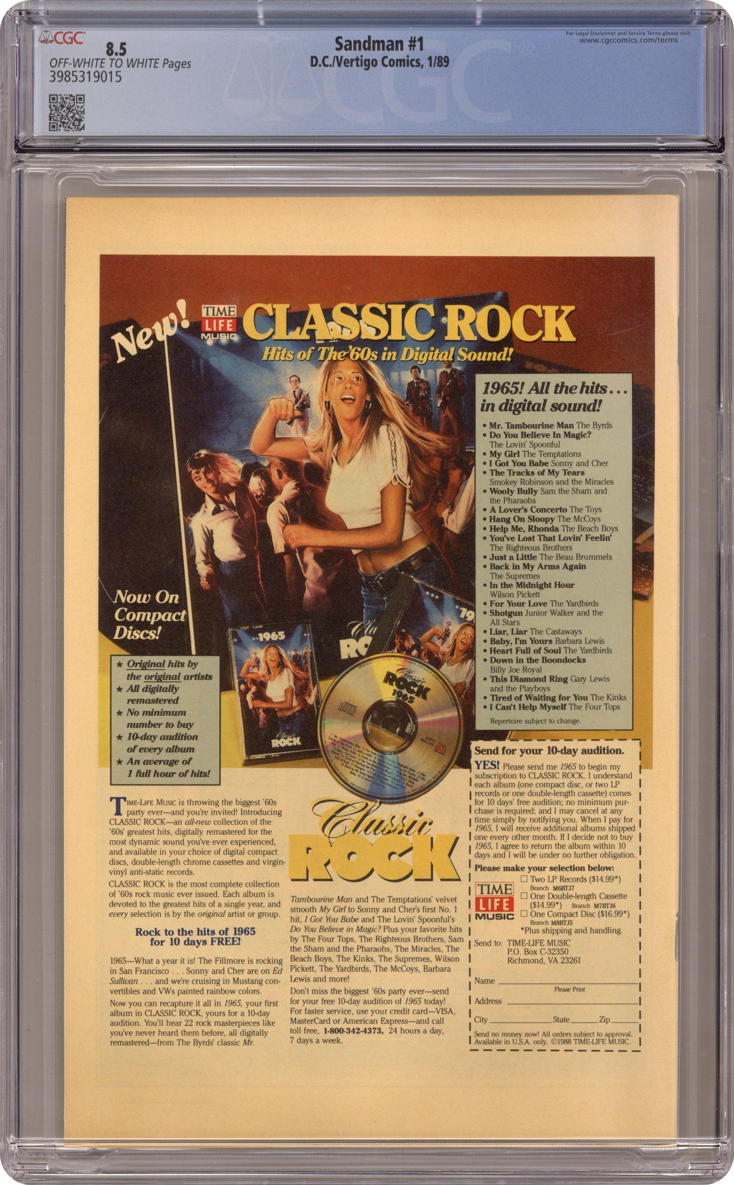 Published Jan 1989 by DC/Vertigo.Sandman (1989 DC/Vertigo) 1 CGC 8.5