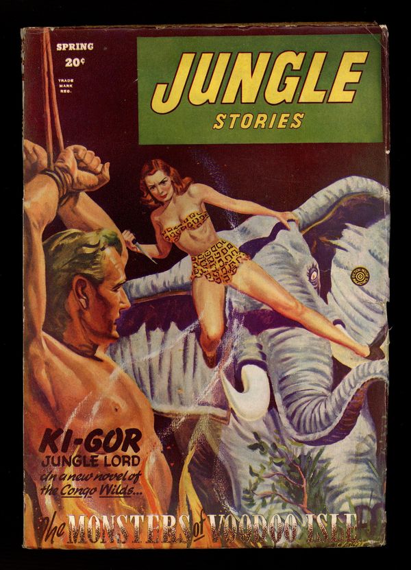 Ended Feb 20 2024 Winning Bid $12 Spring 1946 Feb-Apr. Cover by George Gross. Ki-Gor stars in "The Monsters of Voodoo Isle" by John Peter Drummond, plus other jungle stories by Paul Selonke, Dan Cushman, Day Keene, and John Starr. Interior illustrations by Chester Martin and others. 7-in. x 10-in.; black and white text with spot illos.; 128 newsprint pages. Cover price $0.20. Grade: GD/VG 3.0 explanation of grade Condition: Used (collectible)