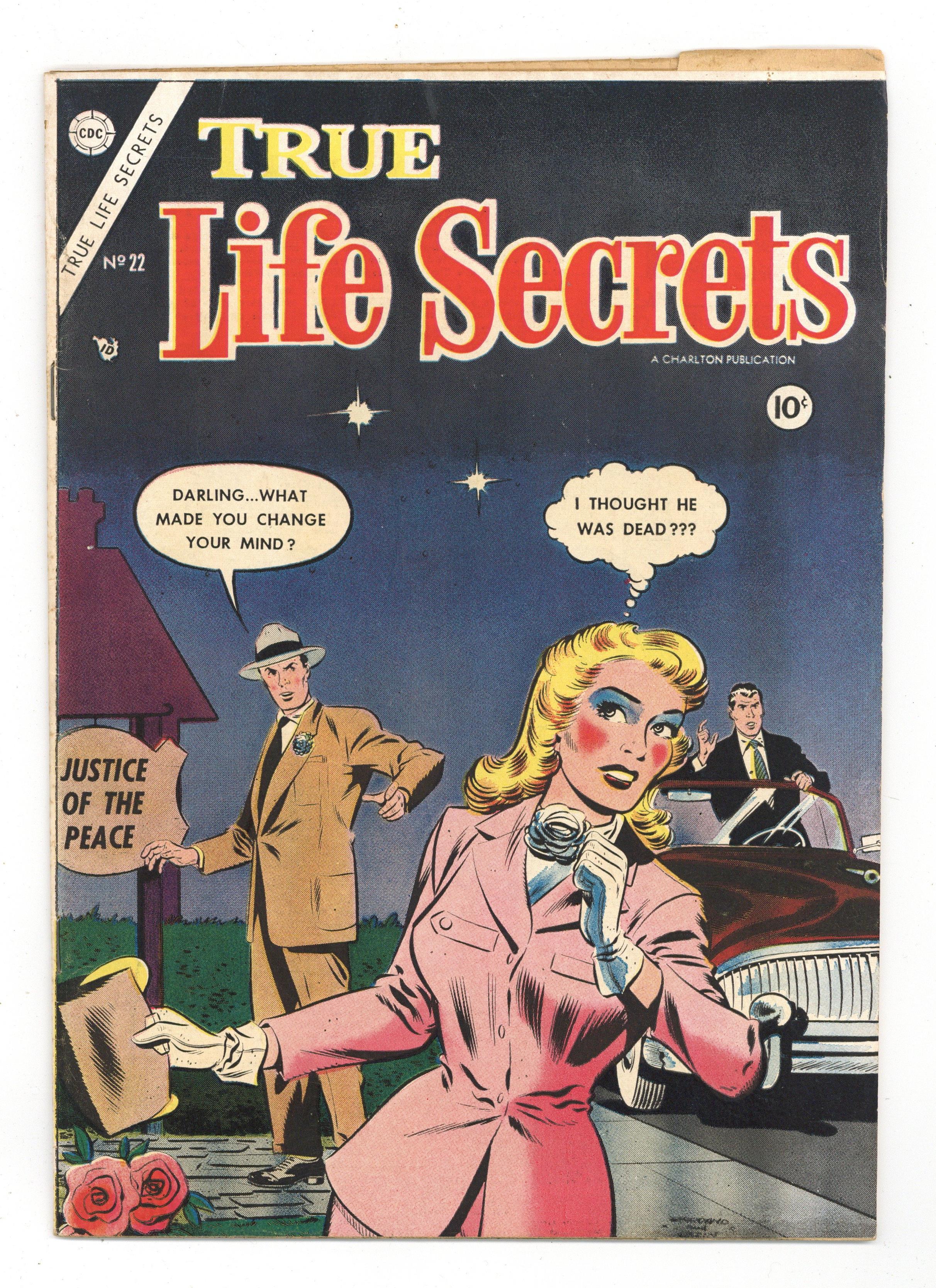 Cover by Dick Giordano and Ray Osrin. Stories and art by Leon Winik, Warren Broderick, S. Finocchiaro and Ray Osrin. Early romance comics that include noirish tales of melodrama, scandal and deceit. Widow Gina tries to lose her sorrow in wild living, but then she meets old high school chum Charlie and has second thoughts. Joyce likes partying with Speedy, who looks like Jimmy Olsen's sleazy older brother, while her father tries to cover for her with straight-arrow Mat. Stella wants to forget her ex, boxer Rocky, but it's hard to do when he's fighting for the championship on TV. Close Call!; My Selfish Heart; Night of Reckoning!; I Must Have Been Crazy; Love Wins a Decision!; Everybody's Sweetheart. 36 pages, Full Color. Cover price $0.10. Grade: GD 2.0 explanation of grade Condition: Used (collectible)