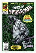 Direct Edition. "Uneasy Alliances" Part 4 of 4. Giant-Sized Anniversary Issue. Script by Terry Kavanagh. Pencils by Alex Saviuk. Inks by Joe Rubinstein. Green foil cover by Alex Saviuk. It's the 100th issue of the Web of Spider-Man series! And all roads (to take over the Kingpin's crime syndicate) lead to a mysterious estate on the outskirts of Manhattan! The Blood Rose is there! And so are the New Enforcers: Blitz, Eel, Tangle, Plantman, and Thermite! Along with the Dragon Man, Dreadnaught, and Super-Adaptoid! But before Peter Parker arrives, he decides to add something new to his usual red-and-blue ensembleā¦the Spider-Armor! Great idea! Because the web-slinger is going to need it when he battles no less than five super-villains and two Richard Fisks! With a little help from Nightwatch, the Amazing Spider-Man may turn the Spider-Armor's debut into a smashing success! It's every man for himself in the wild conclusion to the My Enemy's Enemy storyline! First appearance of the Spider-Armor. Cameo appearances by the Controller, Fixer, Mentallo, and Mr. Fear. Second story: "The Origin of Nightwatch" Script by Terry Kavanagh. Pencils and Inks by Derek Yaniger. The tragic story of how Dr. Kevin Trench became Nightwatch is revealed. (Notes: The issue provides new details about the Name of the Rose storyline that took place in Web of Spider-Man 84-89. Nightwatch appears next in Web of Spider-Man Annual 9. Richard Fisk returns years later in Daredevil (2nd series) 27-31.) 48 pages Cover price $2.95. Grade: VF/NM 9.0 explanation of grade Condition: Used (collectible)