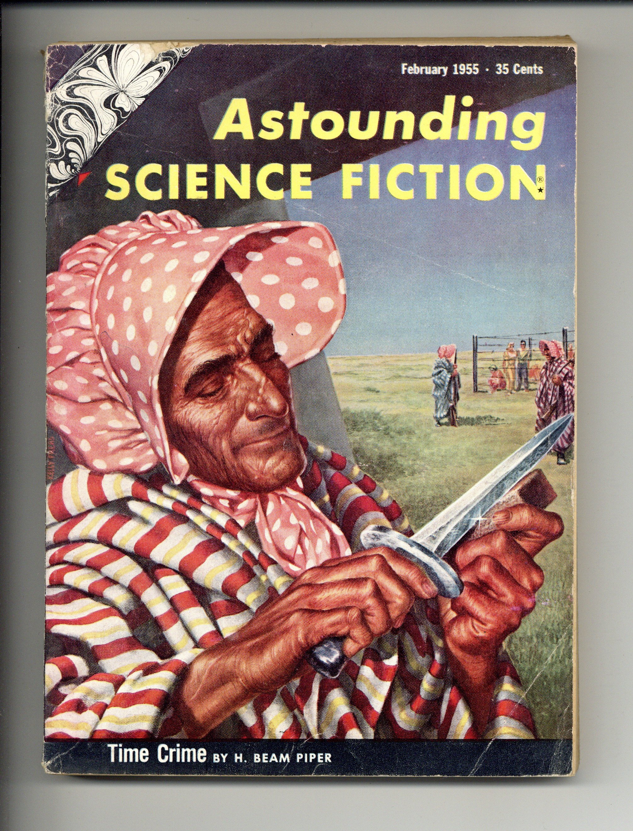 Feb 1955. Volume 54, Issue 6 - 1st printing. Science fiction stories by H. Beam Piper, Algis Budrys, Lee Correy, Dean C. Ing, and James H. Schmitz. Illustrations by Freas, Wagoner, and van Dongen. Article on hemoglobin by Isaac Asimov. Cover by Frank Kelly Freas. Softcover, 5.5-in. x 7.75-in.; 168 newsprint pages, B&W. Cover price $0.35. Grade: GD+ 2.5 explanation of grade Condition: Used (collectible)