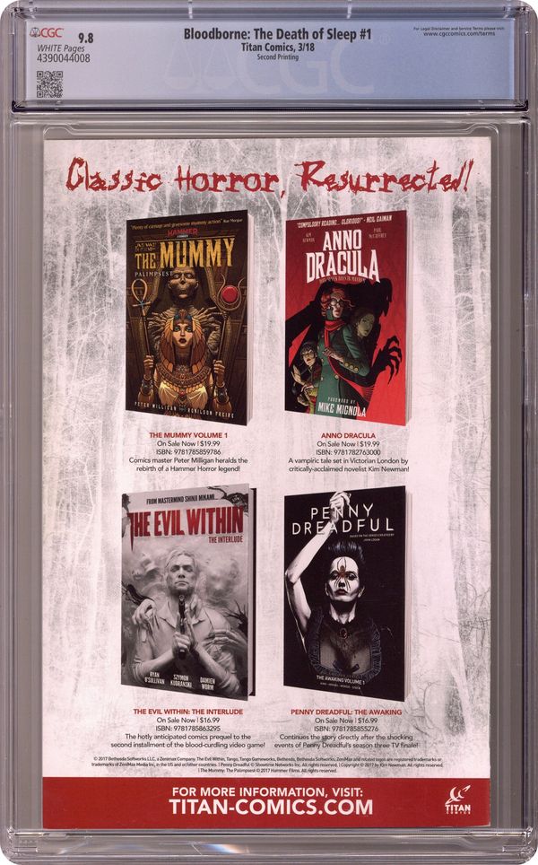Published Mar 2018 by Titan Comics.Bloodborne (2018 Titan) 1E CGC 9.8 Stokely Variant 2nd Printing