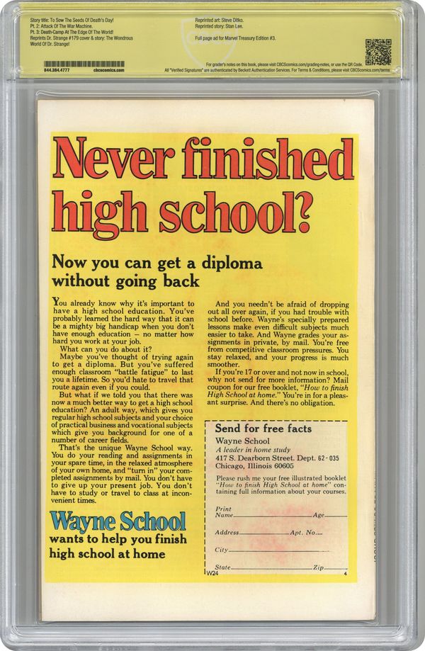 Ended Jun 21 2024 Winning Bid $73 3rd appearance of the Punisher in "To Sow the Seeds of Death's Day!" Script by Gerry Conway. Pencils by Ross Andru. Inks by Mike Esposito. Cover by Gil Kane and Mike Esposito. The Punisher has discovered that an evil mastermind is testing biological weapons on kidnapped Americans somewhere in South America. After recruiting the web-slinger to help him, the Punisher and Spider-Man break into the offices of the shadowy Deterrence Research Corporation in New York City. However during the attack, the wall-crawler is captured and transported to the death camp of Moses Magnum! Can the Punisher rescue the Amazing Spider-Man and the captive civilians before they meet a horrible fate? First appearance of Moses Magnum. (Note: The Punisher appears next in Marvel Preview Magazine 2.) Back up story: "The Wondrous World of Doctor Strange!" Script by Stan Lee. Art by Steve Ditko. Spider-Man and the Master of the Mystic Arts team up to battle Xandu! Reprinted from Doctor Strange 179. (Notes: The story originally appeared in Amazing Spiderman Annual 2, and was later reprinted in Doctor Strange 179. A reprint of the cover of Doctor Strange 179 is included in the issue.) 64 pages Cover price $0.50. Grade: CBCS 7.5 explanation of grade Condition: Used (collectible)