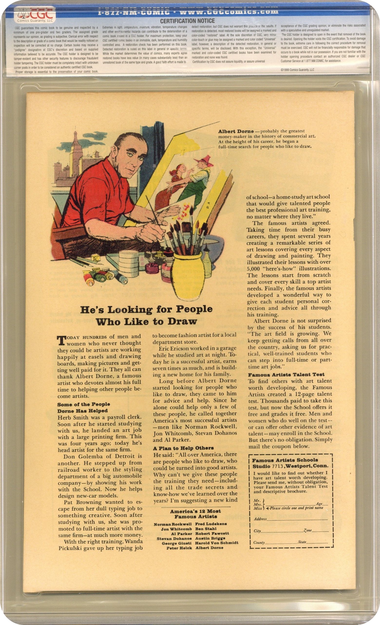 Ended Oct 19 2024 Winning Bid $131 Cover by Jack Kirby, Gene Colan, Mike Esposito, and Vince Colletta. By Force of Arms!, script by Stan Lee, art by Gene Colan (as Adam Austin) and Vince Colletta; Neptune sends a group of electric eels to help Namor defeat the Demon of the Diamonds; Learning that Dorma has been exiled to the land of the Faceless Ones, Namor heads off to rescue her; Back in Atlantis, the citizens begin an active revolt against Krang. Another World, Another Foe!, script by Stan Lee, art by Jack Kirby, Bob Powell, and Mike Esposito; Discovering the bullet that is lodged in the Hulk's brain, the Leader dissolves it with a laser and bathes our hero with gamma rays to give him strength; The Hulk still has Banner's mind but can no longer transform into human form thanks to the extra blast of radiation. 36 pgs., full color. $0.12. Cover price $0.12. Grade: CGC 9.0 explanation of grade Condition: Used (collectible)