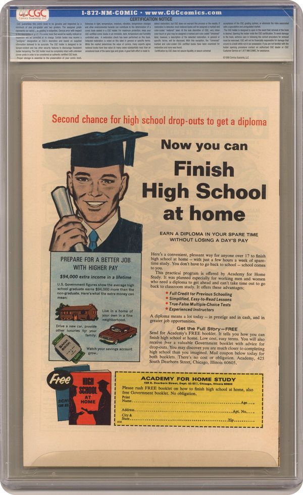 Ended Oct 16 2024 Winning Bid $152 Cover pencils by George Tuska and John Romita (alterations), inks by Frank Giacoia and John Romita (alterations). "Under the Name of Ritual," script by Roy Thomas (uncredited) and Gerry Conway, pencils by Gene Colan, inks by Sam Grainger and Marie Severin (uncredited); Lady Tuvia leads Namor and Spider-Man to the land of the Black Sea People where she's hoping that Namor will stand as her champion; Namor, duty bound, agrees to take on Turalla the Mad who is hoping to lead his people into battle against Atlantis; With a bit of Spider-Man's help, Namor defeats Turalla and restores order to the Black Sea People; Tuvia then uses her magic to return them both to New York City. Story continues from Daredevil #77. Letter from comics editor Bob Rozakis. 36 pgs., full color. $0.15. Cover price $0.15. Grade: CGC 9.4 explanation of grade Condition: Used (collectible)