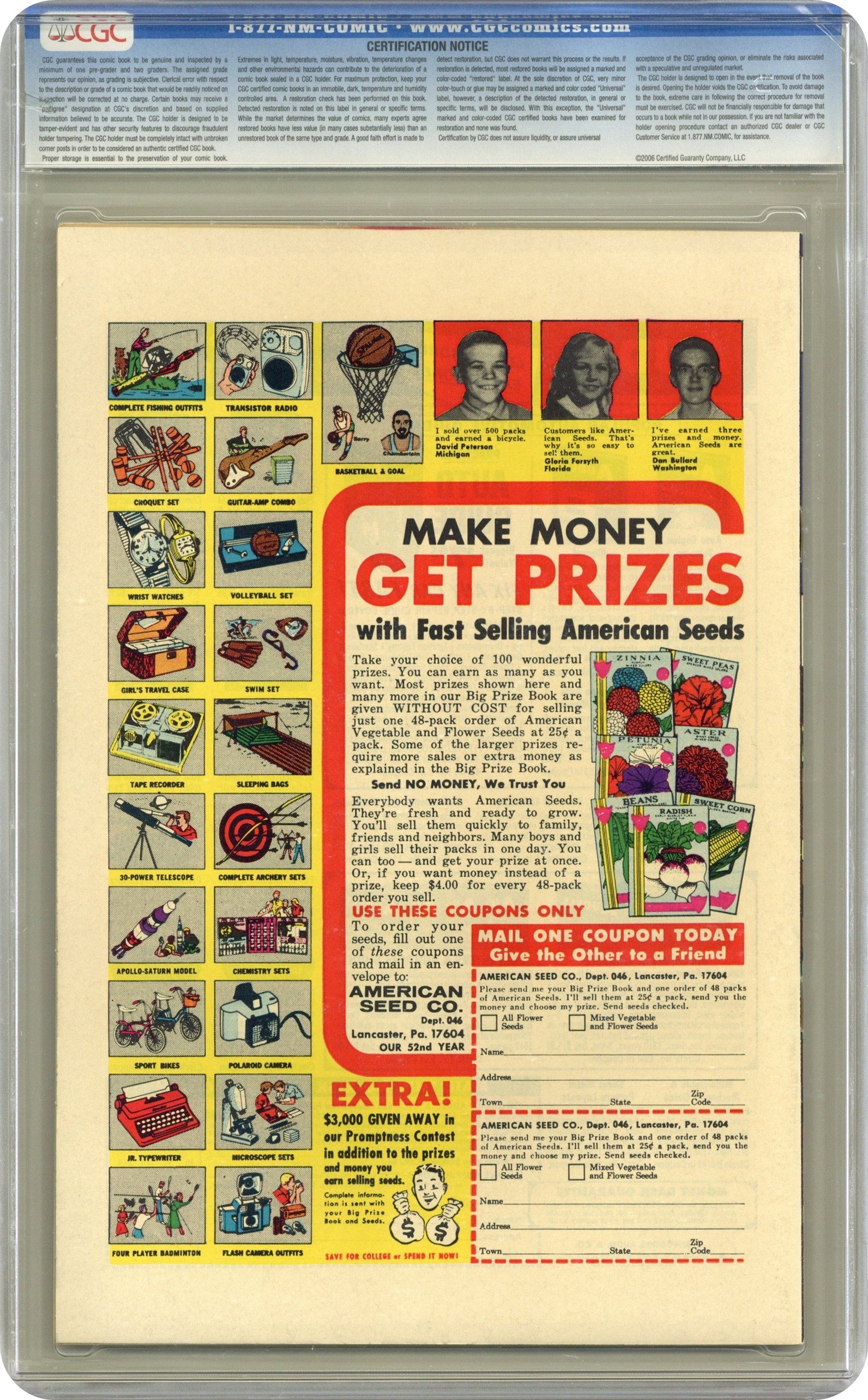 Ended Oct 16 2024 Winning Bid $131 Cover pencils by Marie Severin, inks by Sal Buscema. "A World My Enemy!", script by Roy Thomas, pencils by Sal Buscema, inks by Jim Mooney and Mike Esposito (as Joe Gaudioso); Upon discovering chemical weapons that were dumped into the ocean, Namor is fed up dealing with the surface dwellers and decides to take a more proactive stance against them; He travels to New York City where he addresses the United Nations and warns them to immediately cease poisoning his oceans or they will have to answer to him. A special note by Roy Thomas discussing a special letter which is printed from science fiction writer and Marvel fan Roger Zelazny. 36 pgs., full color. $0.15. Cover price $0.15. Grade: CGC 9.4 explanation of grade Condition: Used (collectible)