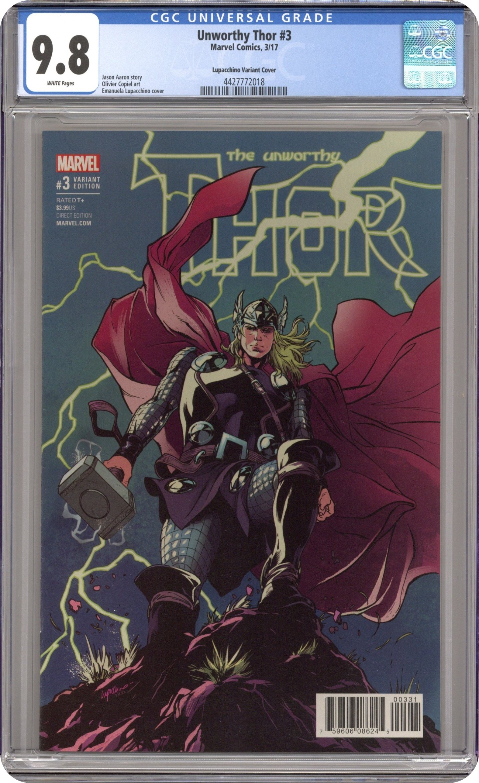Unworthy Thor (2016 Marvel) 3C CGC 9.8 Lupacchino 1:25 Variant
