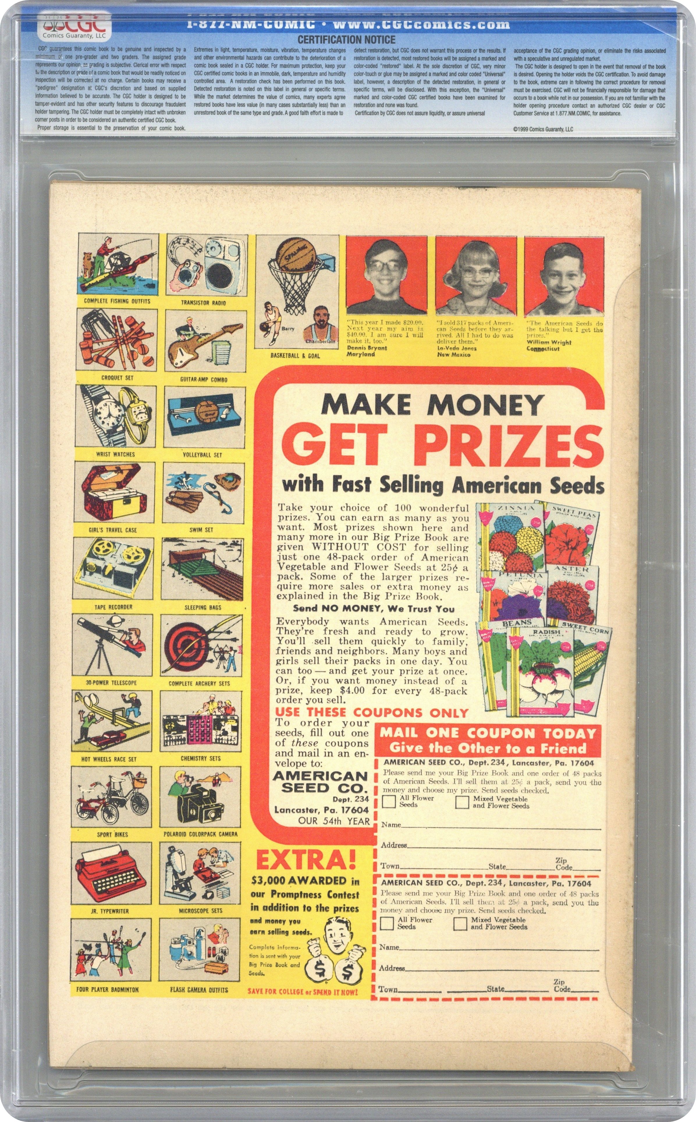 Ended Nov 2 2024 Winning Bid $160 48-page giant. Cover by Jeff Jones. "Tribunal of Fear," script by Denny O'Neil, pencils by Don Heck, inks by Dick Giordano; Diana encounters Jonny Double, a private detective who prods her into a fight (which she wins) to test her prowess, and then offers her a job; Double is currently employed by nightclub magnate Fellows Dill, the "dean of beautiful women"; A fanatic religious/moralist organization called The Tribunal is out to murder him for his embodiment of values with which they disagree. Editorial by O'Neil discussing the character of Wonder Woman. "Battle of the Mermen!", script by Robert Kanigher, pencils by Ross Andru, inks by Mike Esposito; Wonder Girl and Renno battle sea-centaurs who have attacked the Mer-man world. Statement of ownership - average print run 302,500; average paid circulation 159,263. 52 pages, Full Color. Cover price $0.25. Grade: CGC 8.5 explanation of grade Condition: Used (collectible)