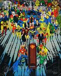 Signed by Jerry Ordway, Roger Stern, Dan Jurgens, Dennis Janke, Louise Simonson, Jon Bogdanove, and Mike Carlin. No certification is included. High quality print on poster stock. 21" x 26". NOTE: Poster is folded as originally issued. Poster displays some creasing and tearing to the lower right.