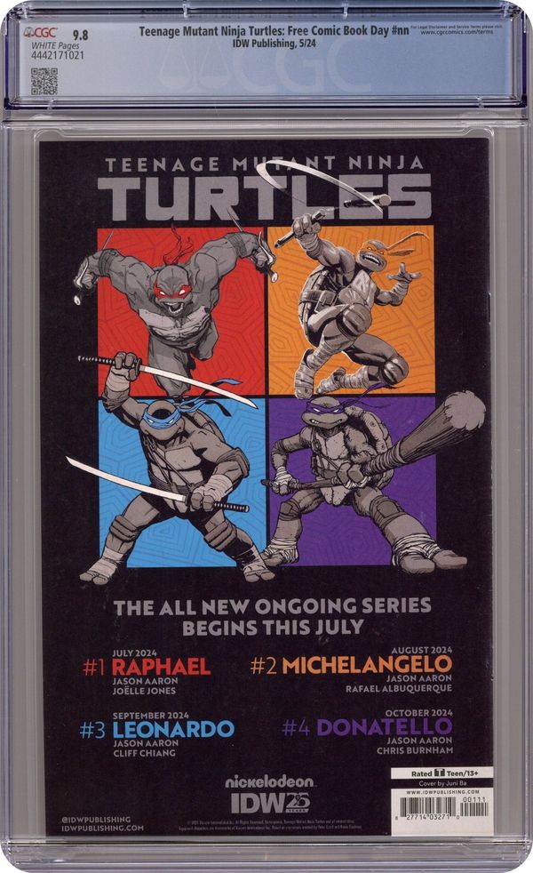Published May 2024 by IDW Publishing.Teenage Mutant Ninja Turtles (2024 IDW) FCBD 1 CGC 9.8