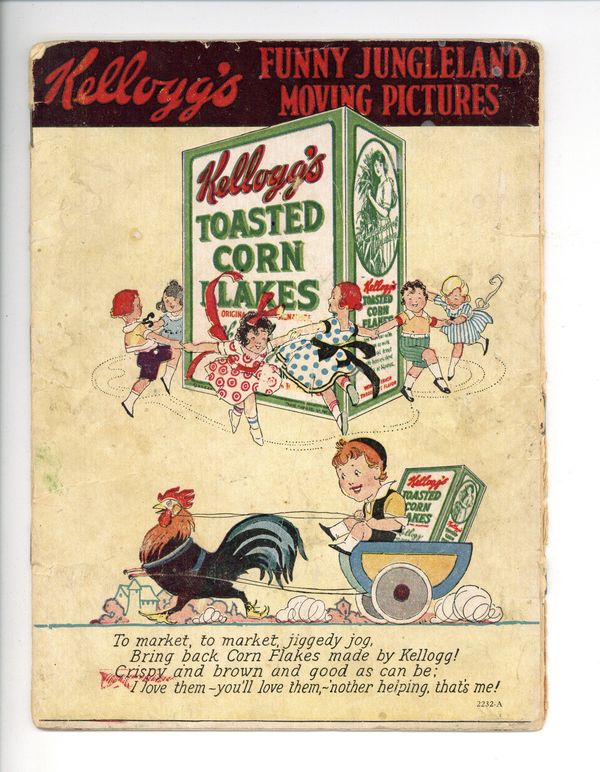 TO MARKET EDITION - Later editions have Toasted Corn Flakes "To Market" advert on back cover (paragraph below rooster pulling boy in wagon begins with "To Market"). Interior contents are identical to the earlier editions with the Old Woman in the Shoe ad. NOTE: Versions with the "To Market" ad will still vary.