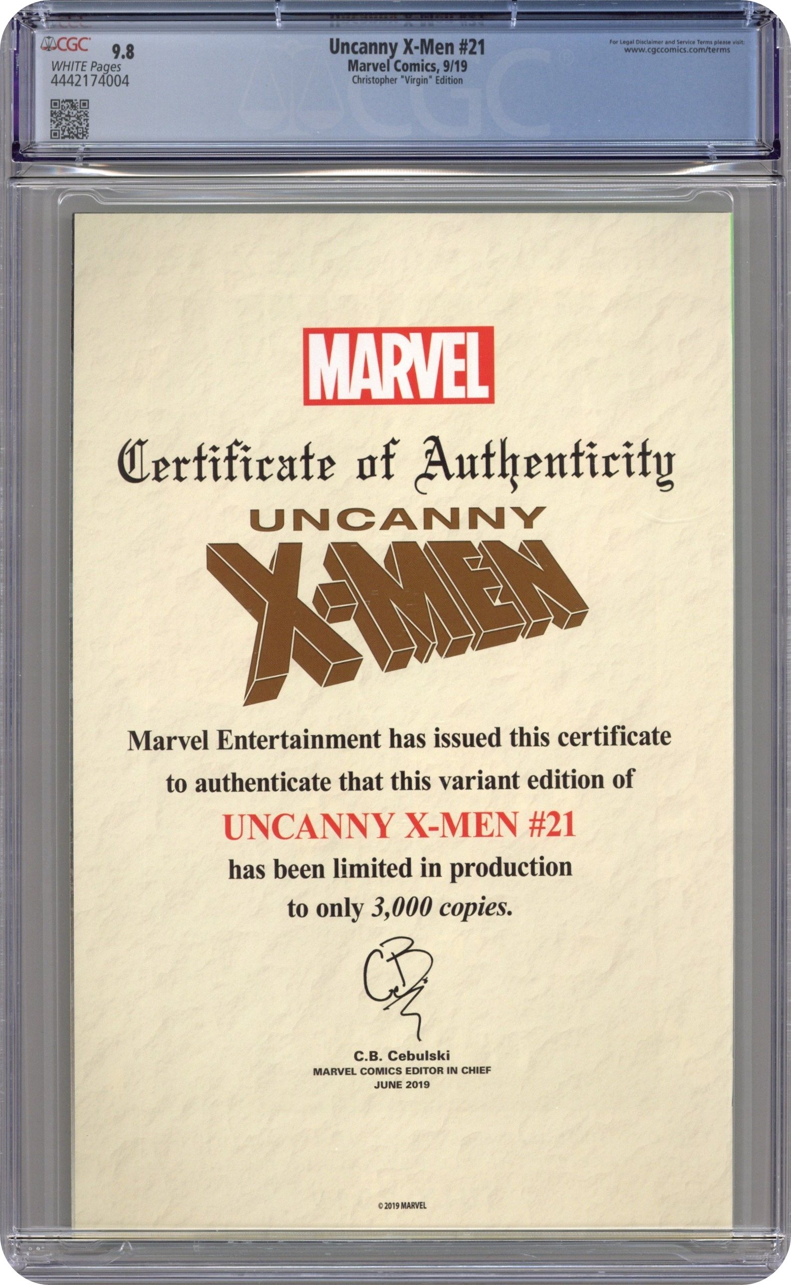 Uncanny X-Men (2019 5th Series) 21SDCC.A CGC 9.8 Christopher SDCC Virgin Variant