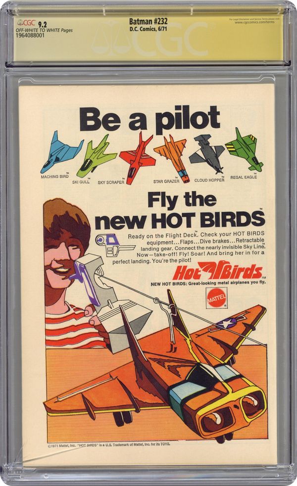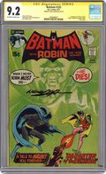Ended Oct 17 2024 Winning Bid $1,463 1st appearance of Ra's Al Ghul. Last 15-cent cover price. Cover by Neal Adams. "Daughter of the Demon," script by Denny O'Neil, pencils by Neal Adams, inks by Dick Giordano; Origin of Batman and Robin retold; Robin returns home from a night of adventuring; Two gunmen armed with tranquilizer darts shoot the Boy Wonder and take him prisoner; Later, Bruce Wayne receives a photograph of his kidnapped partner and a challenge to find him; Ra's Al Ghul contacts deduce that Bruce Wayne and the Batman are one in the same; He calls upon the world's greatest detective to help him find his daughter Talia, who also has been kidnapped. Letter to the editor by Mike W. Barr. 36 Pages, Full Color. Cover price $0.15. Grade: CGC 9.2 explanation of grade Condition: Used (collectible)