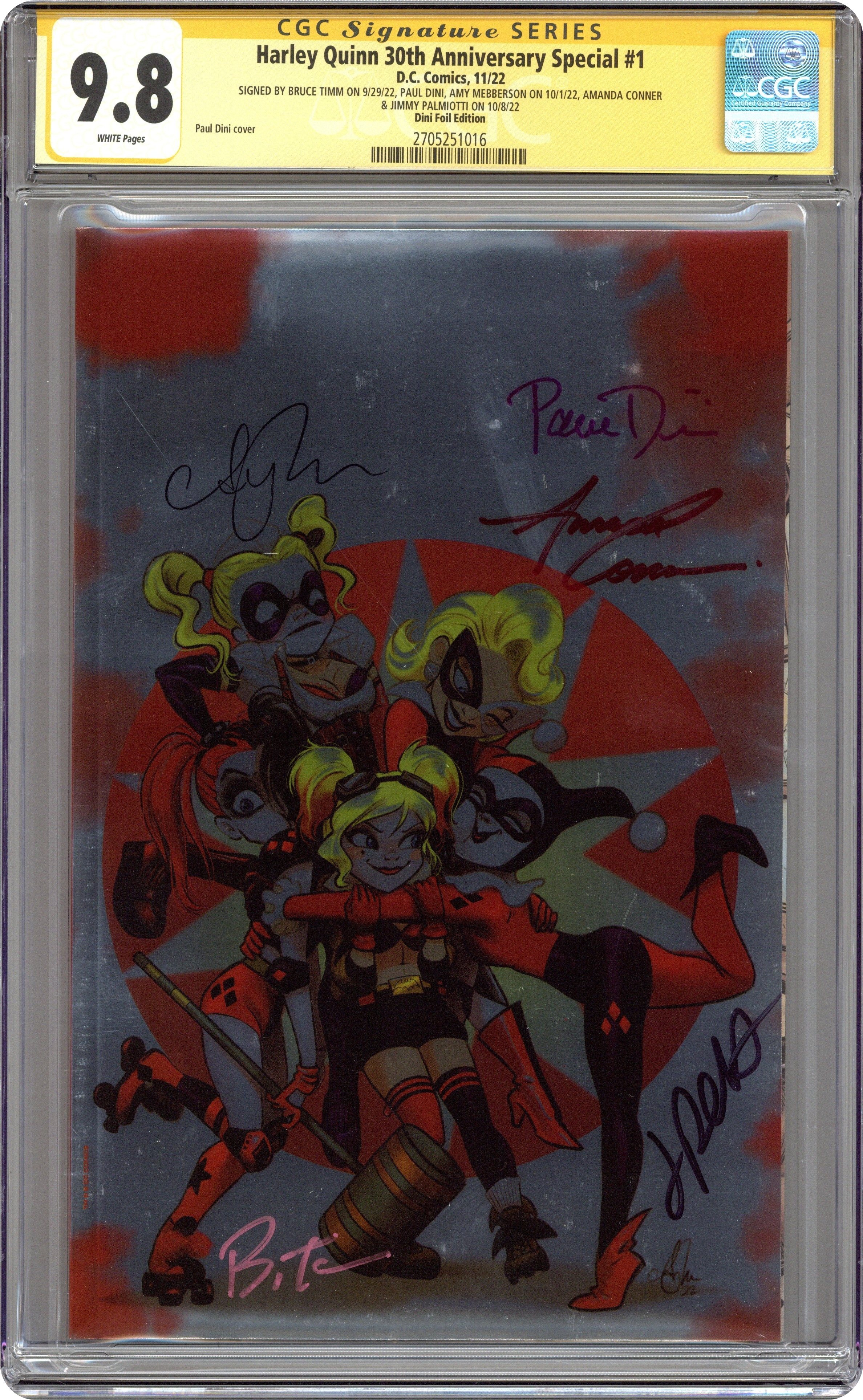 Harley Quinn 30th Anniversary Special (2022 DC) 1DINI.C CGC 9.8 SS Timm/Dini/Mebberson/Conner/Palmiotti Mebberson Dini Foil Virgin Variant