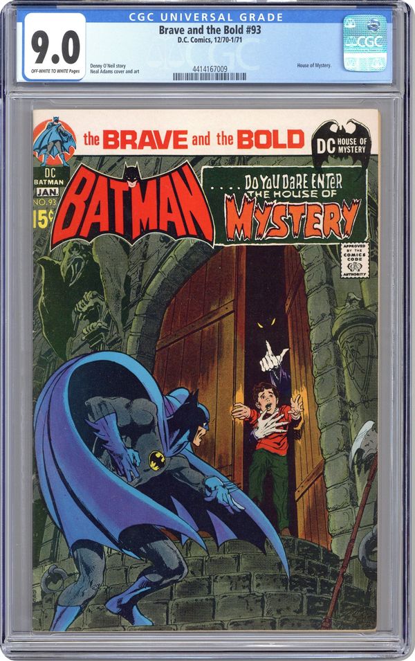 Cover by Neal Adams. "Red Water Crimson Death," script by Denny O'Neil, art by Neal Adams; In a tale narrated by Cain from House of Mystery, Batman slips up and almost gets himself killed trying to stop a normal thug, and is forced to go on vacation by Commissioner Gordon, who believes Batman is heading towards a total burn out; Reluctantly taking the Commissioner's advice, Batman (in his civilian guise of Bruce Wayne) takes a boat cruise in which he saves a small boy named Sean who falls overboard; Going along with the boy to his home of Arin Island, Bruce find that mystical forces are working to have him solve a mystery on the island as Batman; Learning of a local legend of the red sea that has killed many (including Sean's parents) and the supposed cases of haunting on the island, Batman soon learns that it is businessman Alysius Cabot; Cabot is really dumping chemicals into the water that is causing people to die, and is using technology to play on peoples superstitions. 36 Pages, Full Color. Cover price $0.15. Grade: CGC 9.0 explanation of grade Condition: Used (collectible)