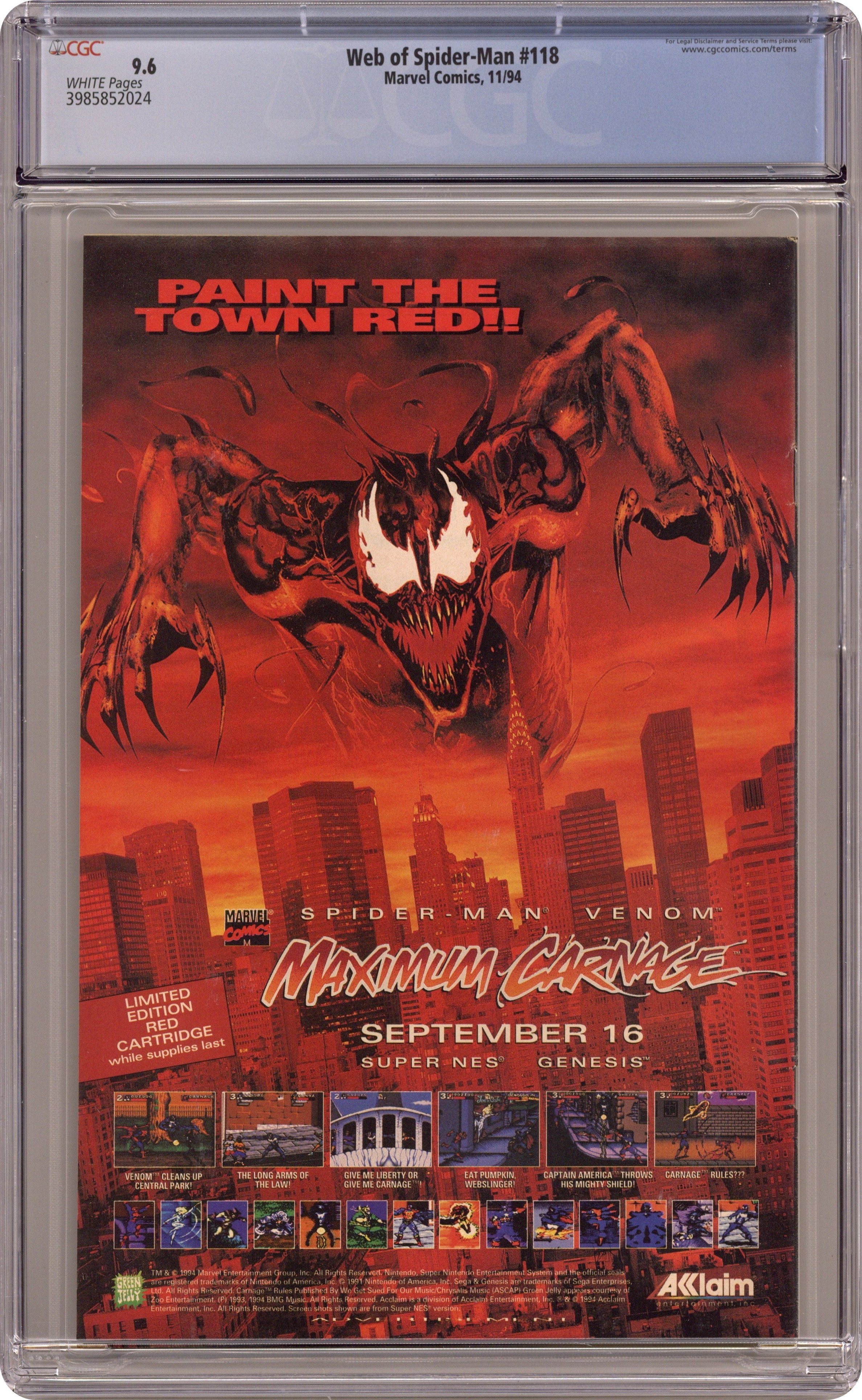 Web of Spider-Man (1985 1st Series) 118D CGC 9.6