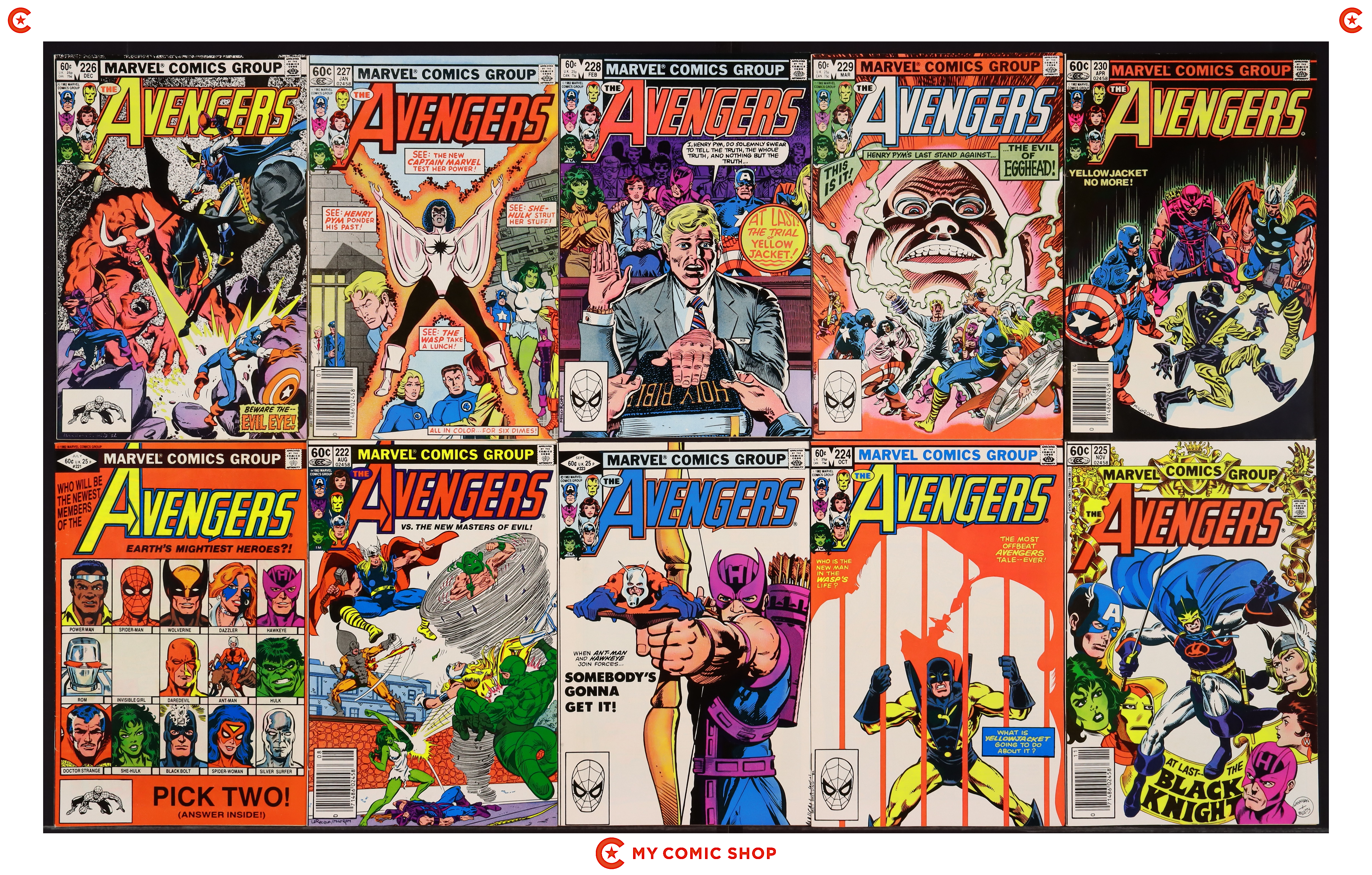 Issues 221-230 of Avengers (1963 1st Series). Most will grade in the VF- to FN range.