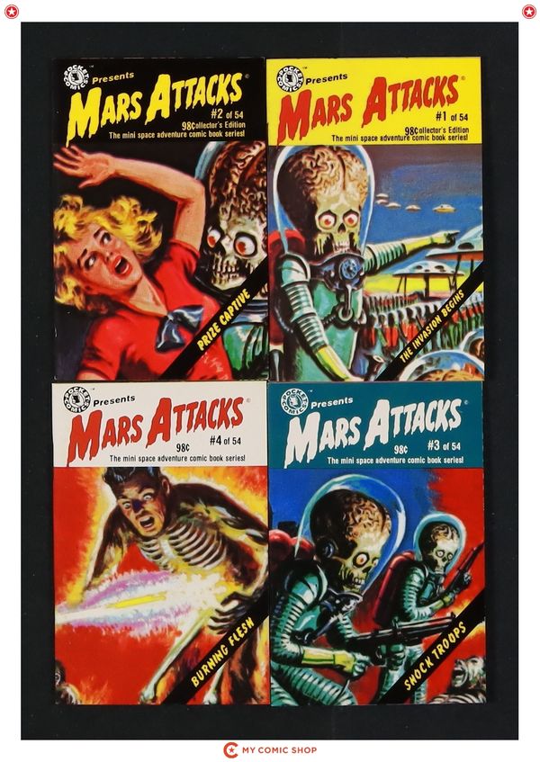 Issues 1-4 of Mars Attacks Mini Comic (1988). Most will grade in the FN range with #4 grading VG.