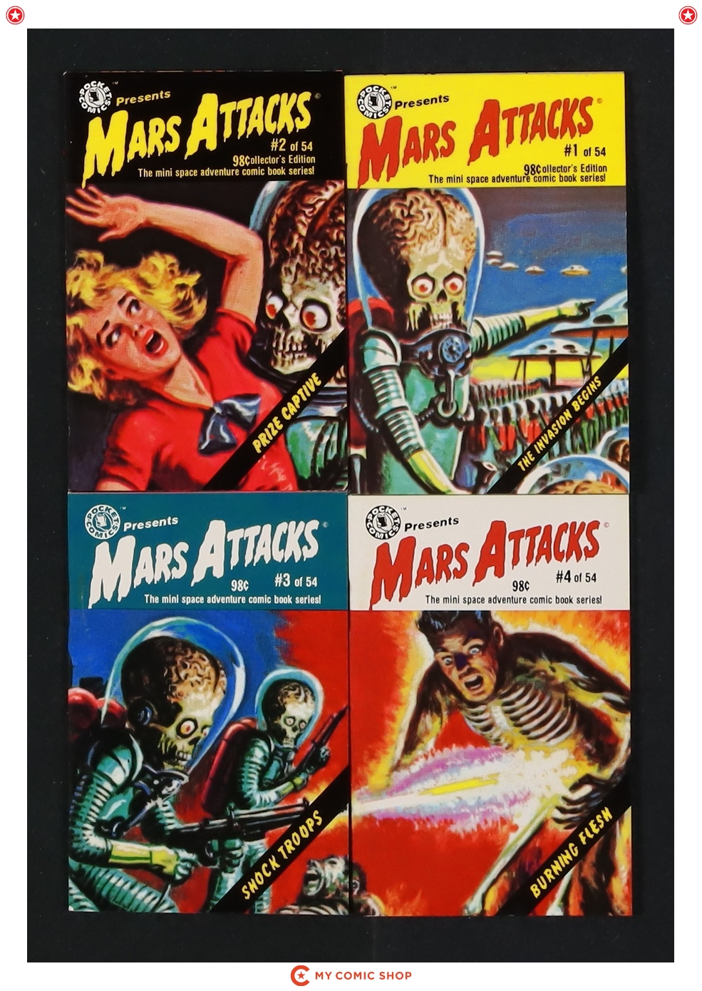 Issues 1-4 of Mars Attacks Mini Comic (1988). Most will grade in the FN range.