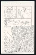 It doesn't get much better than Daredevil tangling with Stiltman high above the streets of New York! Thankfully this time DD's got a bit of help from Luke Cage who delivers a solid "WRACK" to Stilt Man's dome in the first panel. Signed by the artist (personalized) in lower left margin. Pencil and ink on Marvel Comics art board. 11" x 17 1/4".