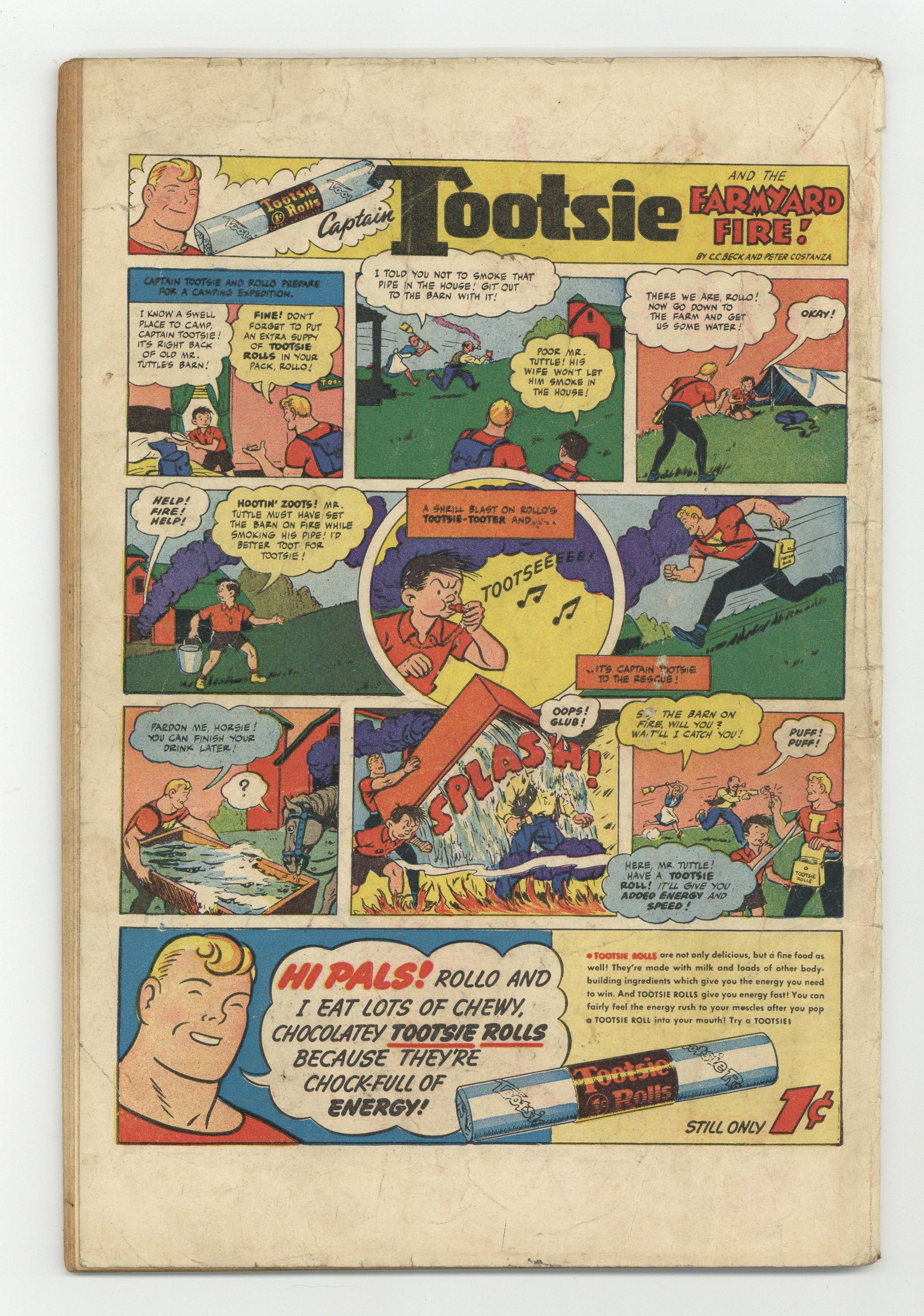 Cover by Tom Gill. Stories and art by C.C. Beck, Pete Costanza, Joe Donohoe, Ray Gill, Jim Wilcox, Robert Pious, Milt Hammer, Pam Robinson, Harold DeLay, Ross H. Davis, Jack Warren, and Tom Gill. Sometimes listed as Blue Bolt #60. Former superhero Blue Bolt soars as an aviator hero in WWII. The Fearless Fellers kid gang enters a Soap Box Derby. Sergeant Spook and Jerry enlist real ghosts to expose phony psychics who are victimizing families of missing WWII servicemen. Blue Bolt's sidekick Charlie tires of being overshadowed by Blue Bolt, and tries some heroics of his own. Also featuring an ad for Tootsie Rolls, "Captain Tootsie and the Farmyard Fire!" from Shazam creator C.C. Beck. Also, instructions for making a model glider plane. Dick Cole; Cap Hawkins True Tales; Bluebolts & Nuts; Edison Bell; Glider Plane; Blue Bolt; Fearless Fellers; Valor's Reward; Sergeant Spook; Night Plane; Krisko & Jasper. 48 pages, Full Color. Cover price $0.10. Grade: GD 2.0 explanation of grade Condition: Used (collectible)