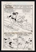 A fantastic B&V title page that sees the best frenemies having a great time on the slopes- that is until Reggie Mantle shows up. Sure hope he gets his comeuppance by the end of this story! Signed by DeCarlo in bottom margin. Pencil and ink on Archie Comics art board. 11 1/2" x 17".