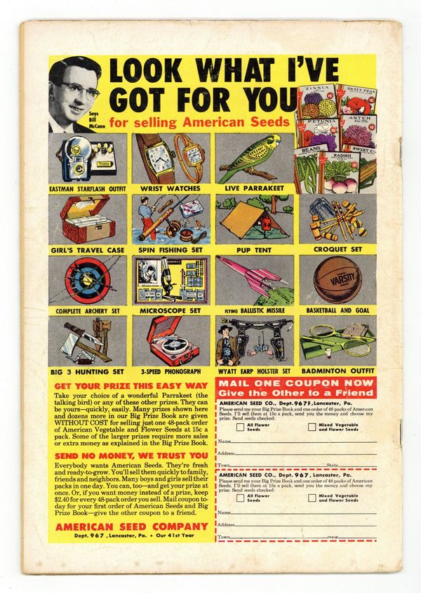 Starts Feb 9 Cover pencils by Curt Swan, inks by Stan Kaye. The Superwoman of Metropolis!, script by Alvin Schwartz, art by Kurt Schaffenberger; Superman transfers some of his powers to Lois Lane in order to teach her a lesson. House ad for The Brave and the Bold #23. The Ugly Superman!, script by Robert Bernstein, art by Kurt Schaffenberger; A wrestler billed as the Ugly Superman falls for Lois. But when he won't stop forcing his attention on Lois, Superman teaches him who the better man is. Peg humor page by Henry Boltinoff. Queen for a Day!, script by Robert Bernstein, pencils by Wayne Boring, inks by Stan Kaye; Clark and Lois are shipwrecked on an island full of Amazons. 36 Pages, Full Color. Cover price $0.10. Grade: VG- 3.5 explanation of grade Condition: Used (collectible)