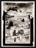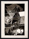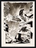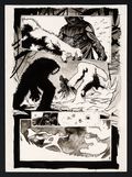 An absolutely magnificent example of the art-first storytelling of the Black, White, and Red anthologies from rising star Danny Earls! This tale sees Vader return to the planet Hoth alone, against the advice of his General, to investigate a strange signal only to be confronted with a pack of Wampas. Earls' visual storytelling abilities shine here as the story is told with such clarity that you might be surprised to find out that the published version had dialogue. Earl's inking skills shine here as well, with a liberal use of inkwash that gives the pages a rich texture and and sense of space. Pencil and ink on 12 sheets of art board. Each measures 11 3/4" x 16".