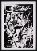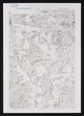 A phenomenal last-page splash reveal! With the Savage Avengers shanghaied back to the Hyperborean age by Deathlok alongside Conan, the team faces a tough battle in getting back to their time- a battle they nearly win before Thulsa Doom's interference gives Deathlok a chance to escape. On this gorgeous final page, we see an injured Deathlok beginning to remember his pre-undead-cyborg life...as Miles Morales! Pencils are on paper, inked art is done over printed pencils on art board. Both measure 11 3/4" x 16 1/2".
