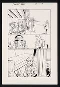 A tense scene from the penultimate issue of this post-apocalyptic odyssey, Hero, Beth, Beth II, and Beth Junior (yes, that's correct) have been captured by the remnants of the Israeli army who are looking for Yorrick. Thankfully Natalya and Ciba show up to save the day- meaning Ampersand finally realizes it's safe to come out in the adorable final panel. Pencil, ink, and screentone on DC Comics art board. 11 1/2" x 17".