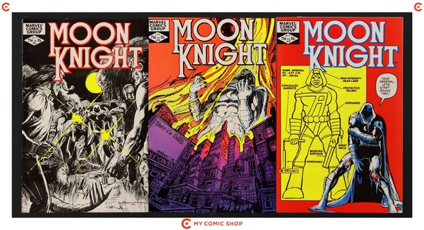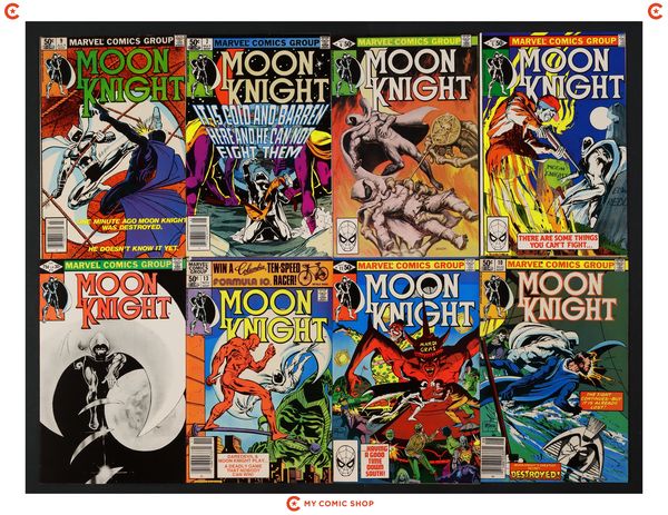 Issues 5-7, 9-11, 13, 15, and 19-21 of Moon Knight (1980 1st Series). Most will grade in the VF to FN range.