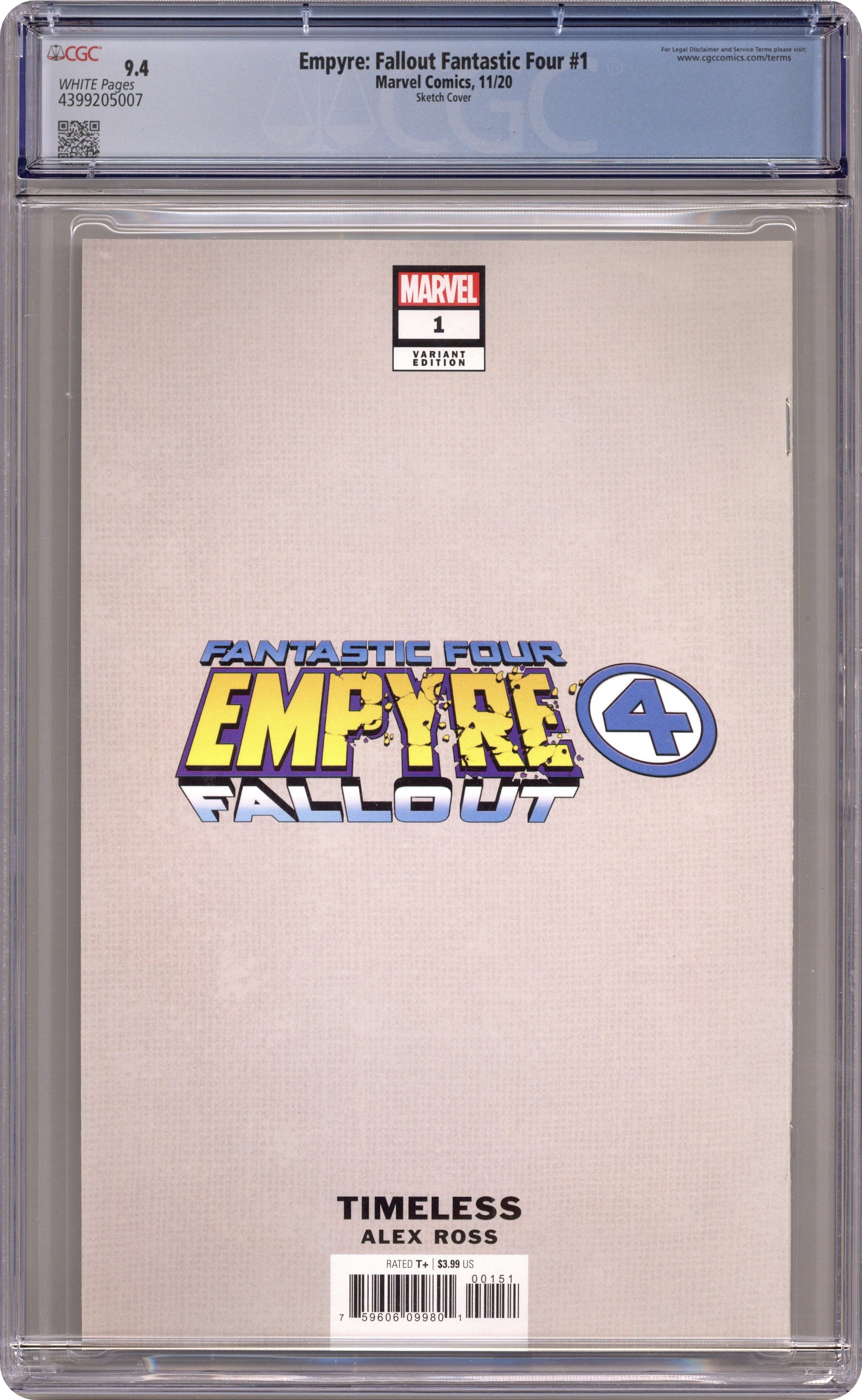 Empyre Fallout Fantastic Four (2020 Marvel) 1E CGC 9.4 Ross B&W Virgin 1:100 Variant