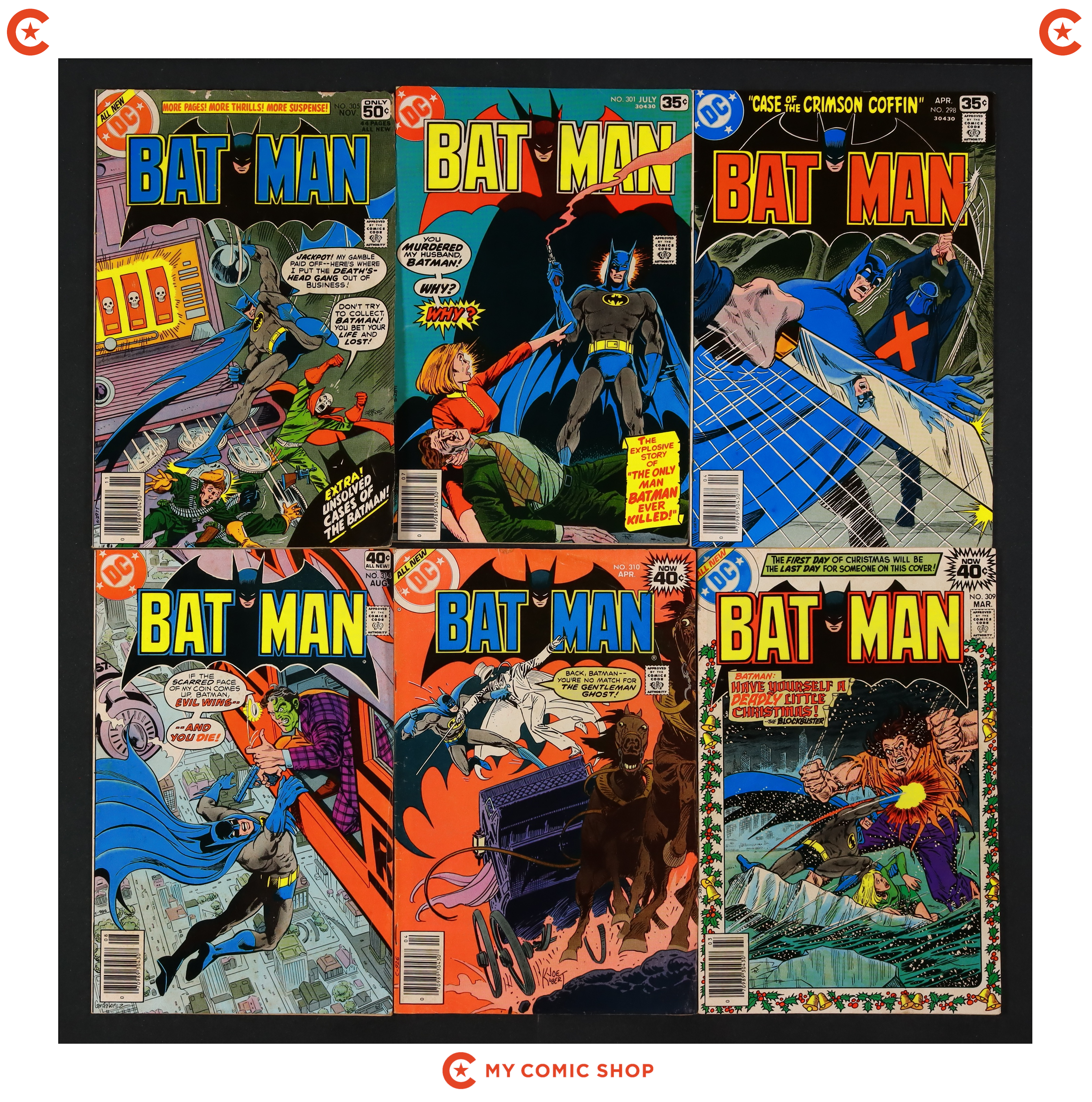 Issues 298, 301, 305, 309, 310, 314, 315, 317 and Annual 2 of Batman (1940). Most will grade in the GD/VG to VG/FN range, with Annual 2 grading at FR.