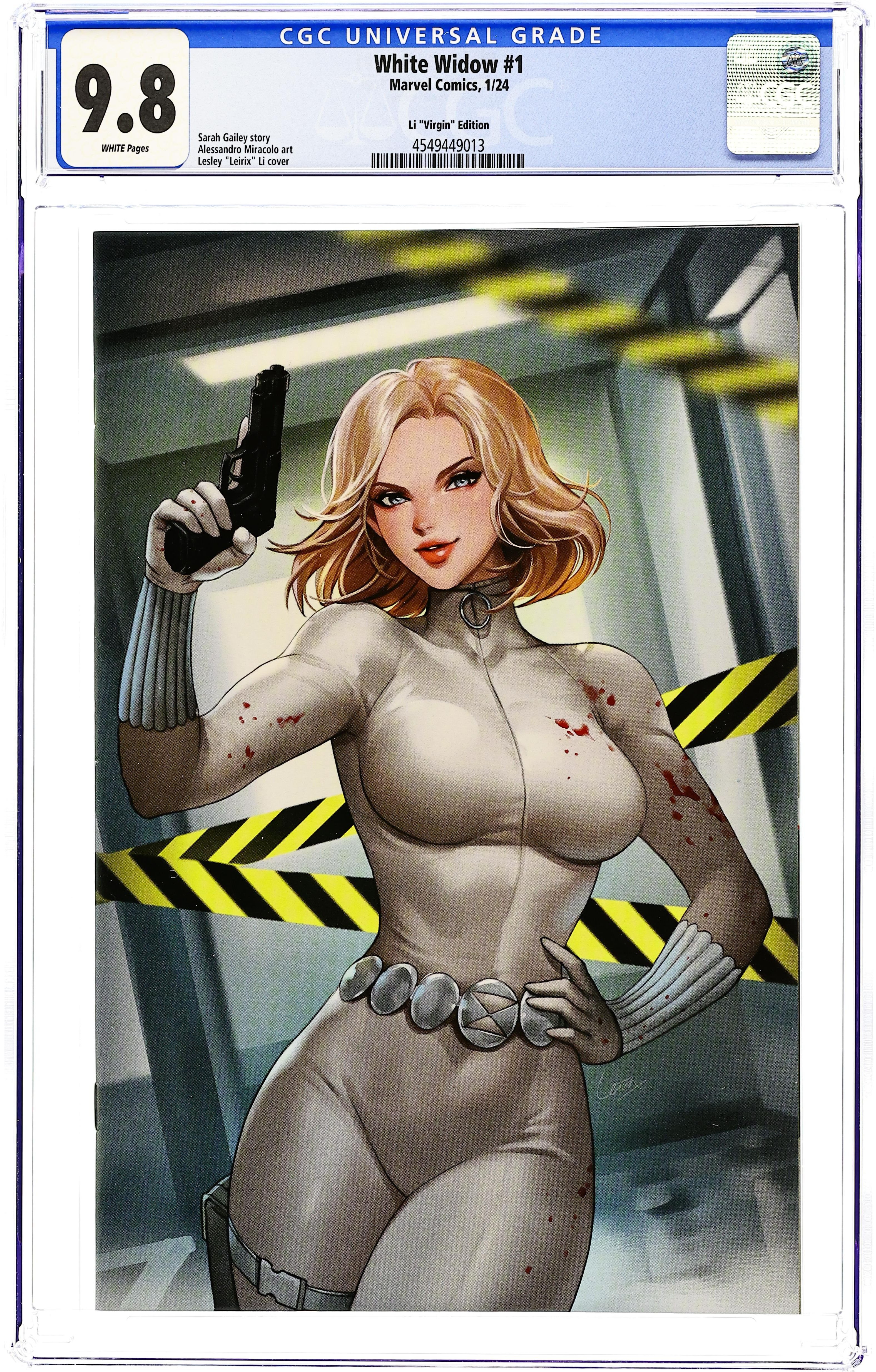 Ended Jun 7 2025 Winning Bid $44 Limited 1 for 50 Retailer Incentive Variant Cover. Written by Sarah Gailey. Art by Alessandro Miracolo. Cover by Lesley "Leirix" Li. Yelena Belova returns! Superspy. Rogue agent. Shadow of the Black Widow. Yelena Belova has been many things, but striking out as a hero in her own right is new to her. Now that she's finally free to choose her own path, who will she become? Sarah Gailey (Buffy the Vampire Slayer, Eat the Rich) joins forces with Alessandro Miracolo (Obi-Wan, Yoda) for a groundbreaking new chapter in the life of one of Marvel's most enigmatic antiheroes. 40 pages, full color. Rated T+ Cover price $4.99. Grade: CGC 9.8 explanation of grade Condition: Used (collectible) unless item is a new release