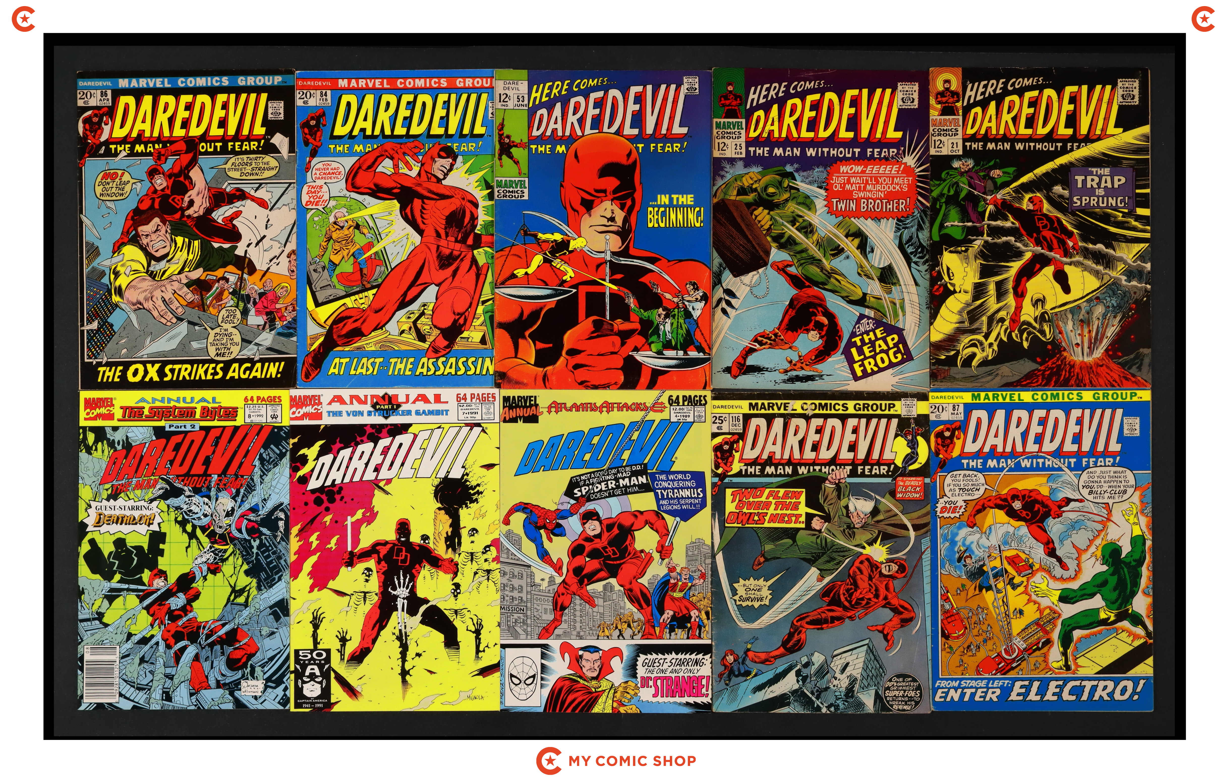 Issues 21, 25, 53, 84, 86, 87, 116; and Annual 4B, 7, 8 of Daredevil (1964 1st Series). Most will grade in the VG/FN to VF range, with 84 and 116 grading at FR-GD.