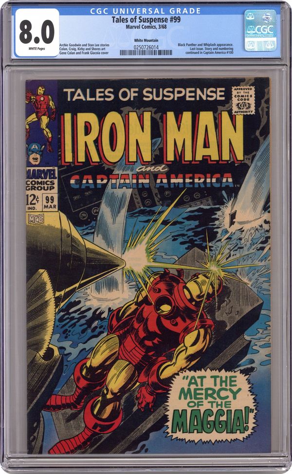Tags: Marvel Legacy Numbering: Captain America (part 99), Marvel Legacy Numbering: Tales of Suspense (part 99), Black Panther, Captain America, Iron ManTales of Suspense (1959) 99 CGC 8.0 White Mountain