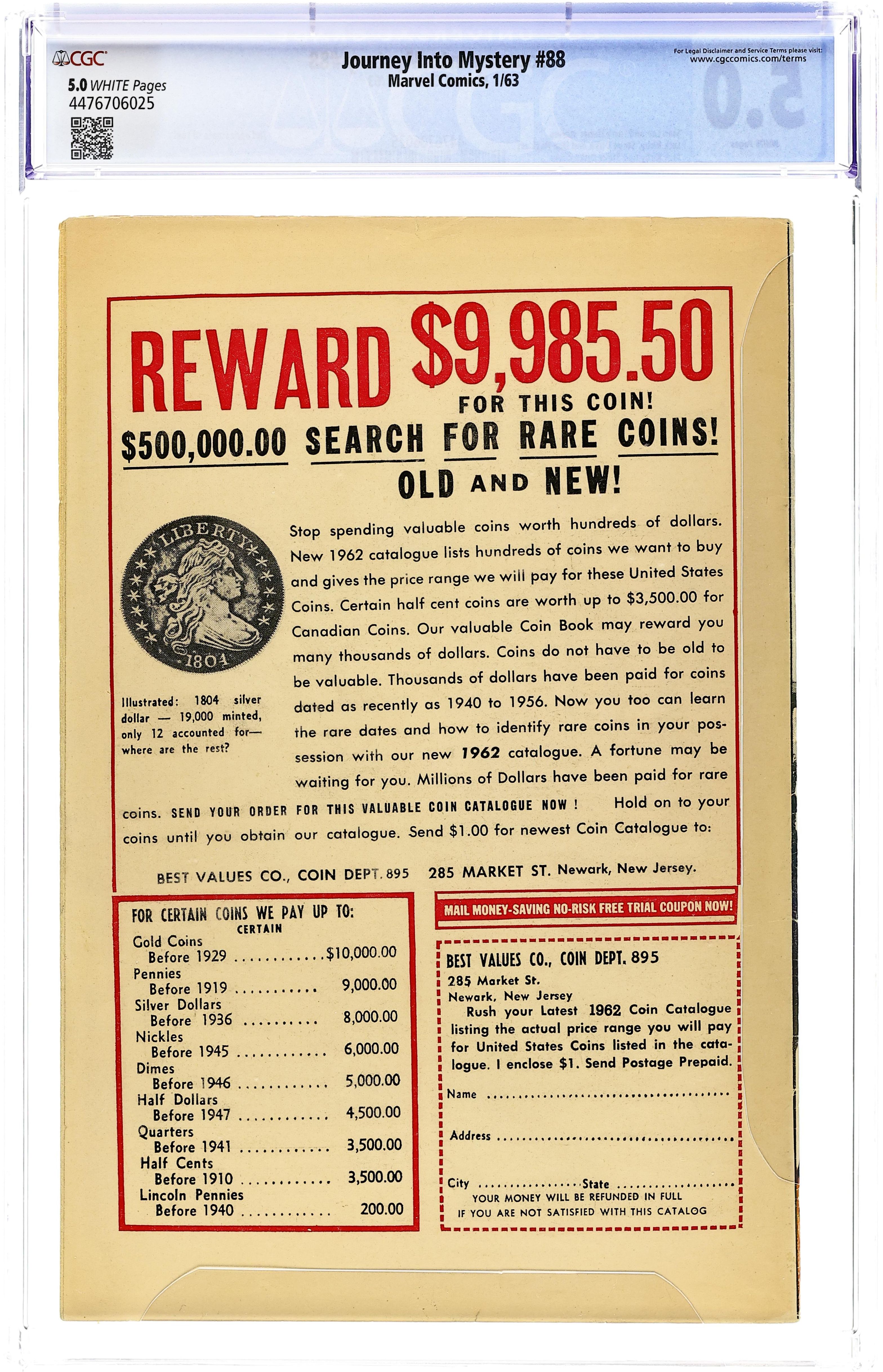 Tags: Marvel Legacy Numbering: Thor (part 88), ThorThor (1962 Marvel 1st Series Journey Into Mystery) 88 CGC 5.0