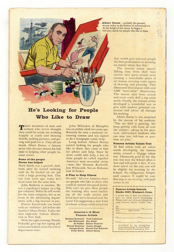 Ended Jul 16 2025 Bid History 29 bids Winning Bid $141 Cover by Jack Kirby and Dick Ayers. When the Mummy Walks, art by Jack Kirby and Dick Ayers; An archaeologist uncovers an ancient mummy, which is actually an alien invader that locked itself in the pyramid. The Strange Stone text story. It Fell from the Flying Saucer!, art by Jack Kirby and Dick Ayers; An artist finds an alien pencil that will make whatever he draws real, but his selfish use of it makes the aliens take it back. Man of Iron!, script by Stan Lee, art by Steve Ditko; A rich weakling pays a witch to give him muscles of iron, but her spell makes him sink right through the earth's surface. The Pretender!, art by Joe Sinnott and Paul Reinman; A man looking through an abandoned house find notes in an alien language; They tell of an alien shapeshifter disguised as a human to undermine Earth before an invasion. 36 pgs., full color. $0.12. Cover price $0.12. Grade: VG+ 4.5 explanation of grade Condition: Used (collectible)