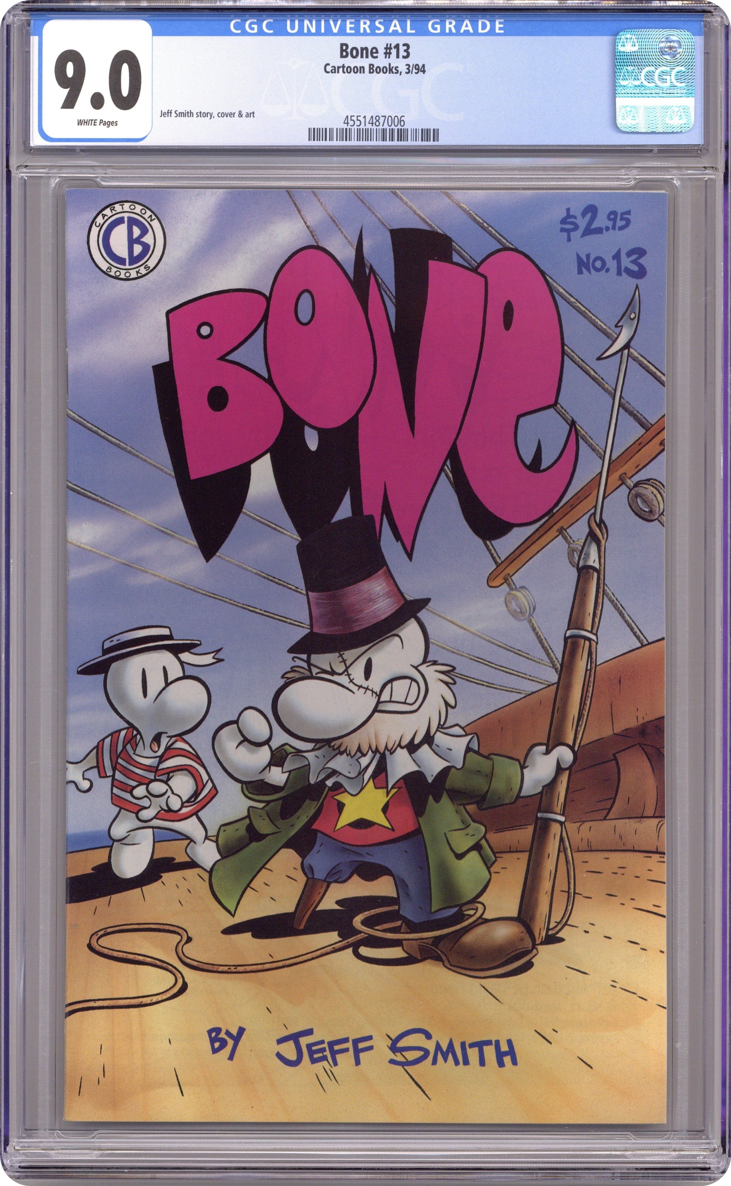 Published Mar 1994 by Cartoon Books.Bone (1991 1st Printing) 13 CGC 9.0