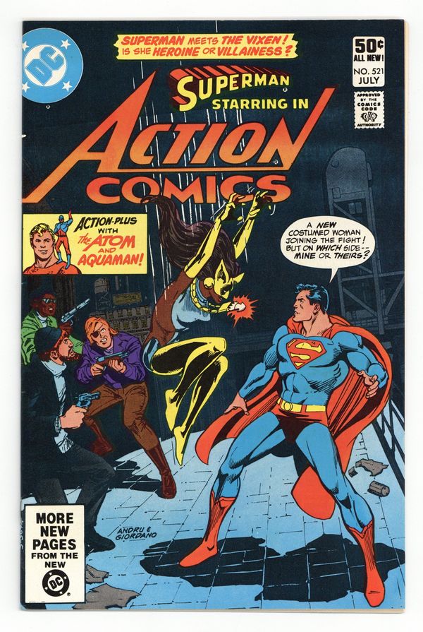 Ended May 10 2025 Winning Bid $40 Direct Edition. Cover pencils by Ross Andru, inks by Dick Giordano. "The Deadly Rampage of the Lady Fox," script by Gerry Conway, pencils by Curt Swan, inks by Frank Chiaramonte; In New York City, the Vixen steals a van full of furs that belong to entrepreneur Mordecai Mule; Superman, attending a function at Madison Square Garden, learns of the robbery and gives chase; Superman and Vixen team up to stop a horde of elephants. "Grow, Little Growfish!", script by Bob Rozakis, pencils by Alex Saviuk, inks by Vince Colletta; Off the coast of Virginia, Aquaman experiments with his telepathic powers by sending out a routine mental scanning wave; He discovers a large, gelatinous organism that shrinks in size; Aquaman contacts the Atom, who teleports over to investigate. 36 Pages, Full Color, $0.50. Cover price $0.50. Grade: FN+ 6.5 explanation of grade Condition: Used (collectible)