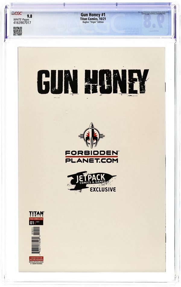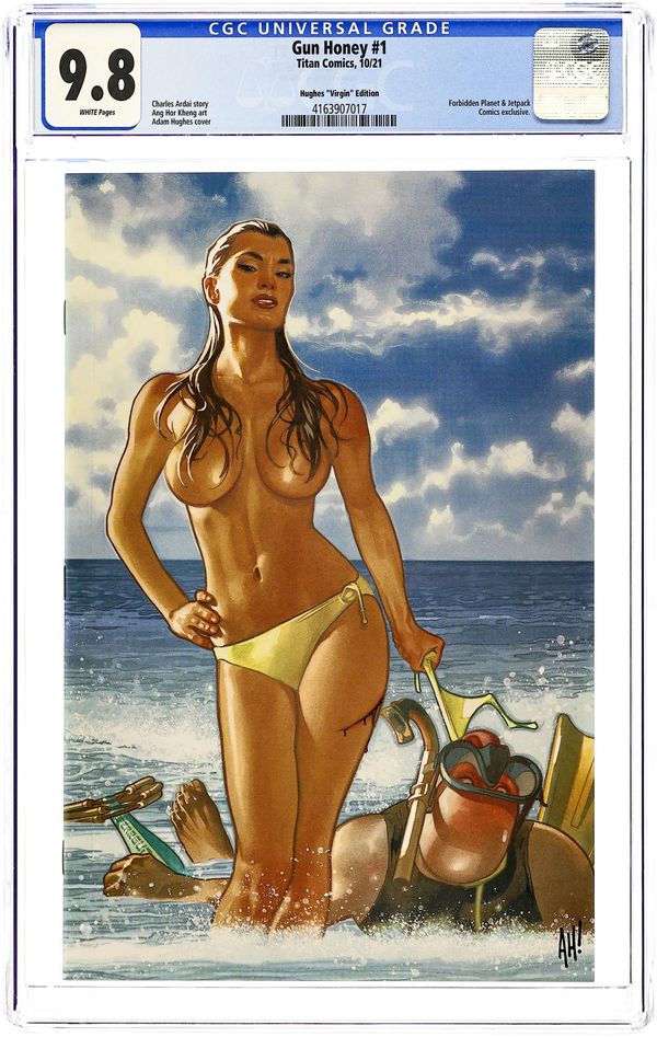 Published Oct 2021 by Titan Comics.Gun Honey (2021 Titan) 1FORBIDDEN.A CGC 9.8 Hughes Forbidden Planet Virgin Variant