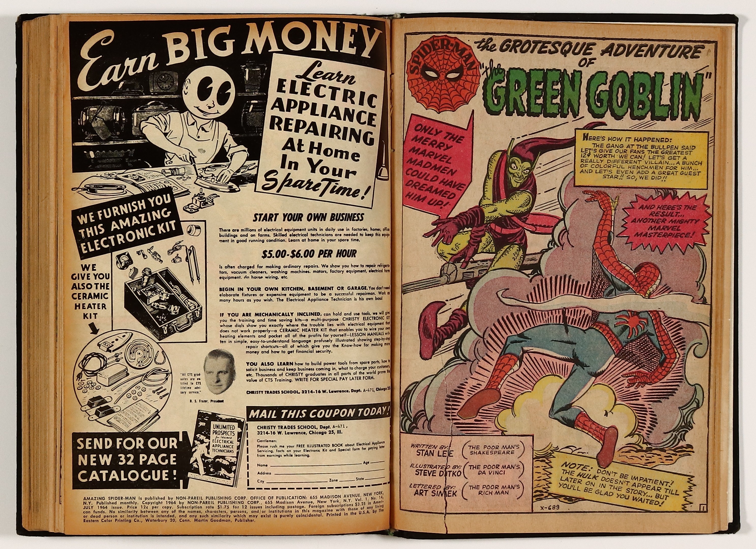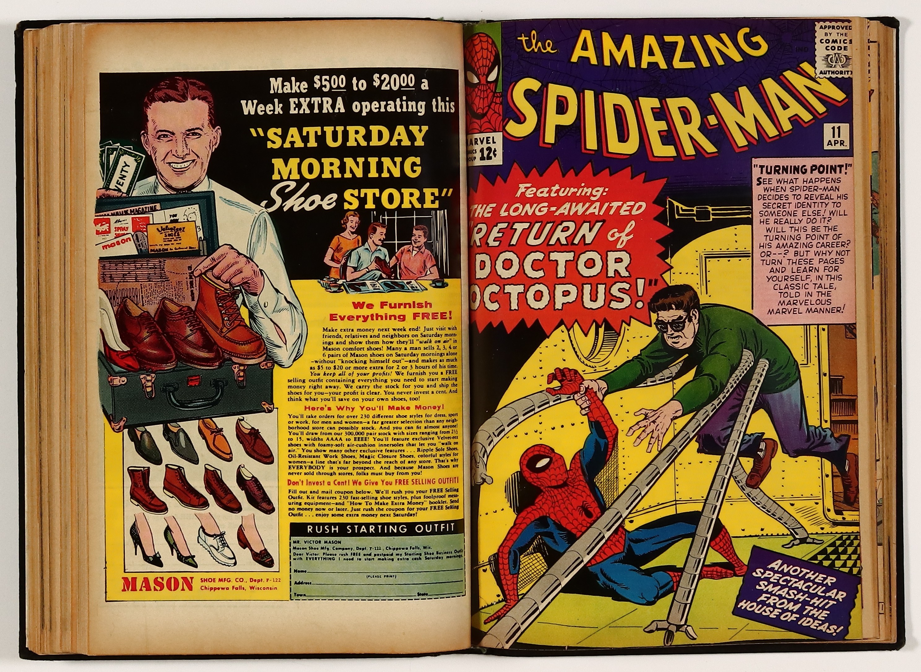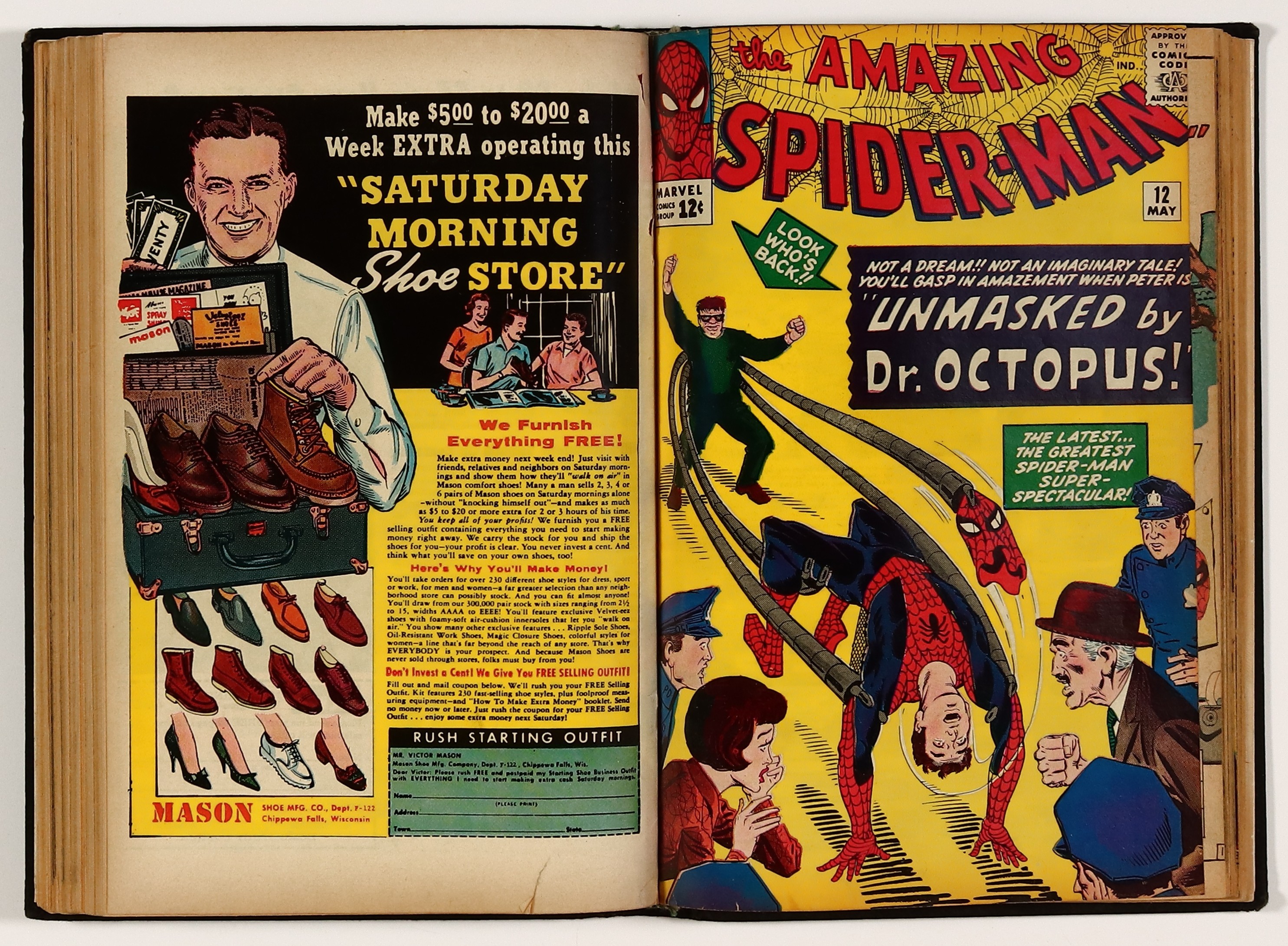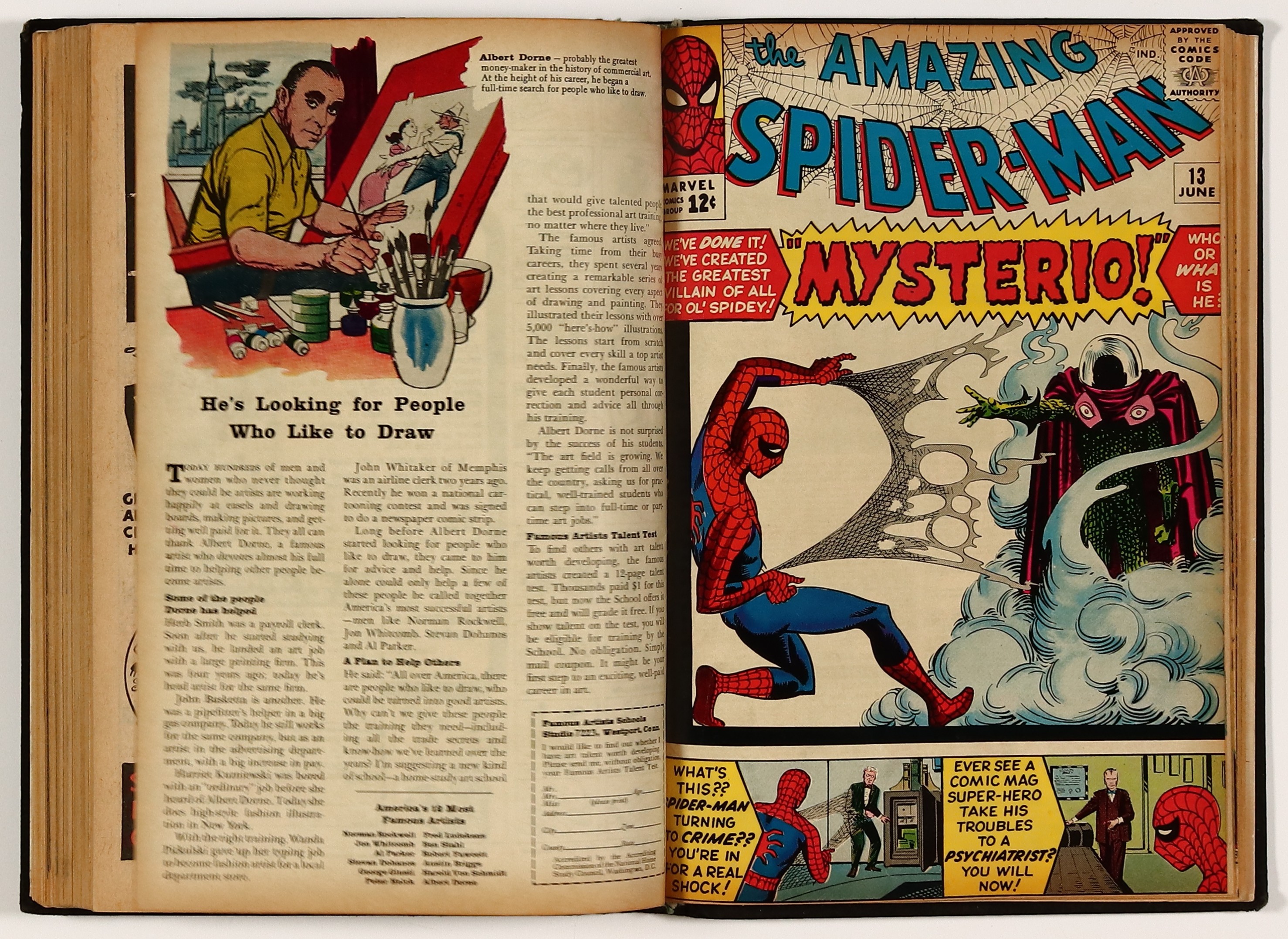 Post-manufacturer hardcover bound volume including issues 6-14 of Amazing Spider-Man (1963 1st Series). Comics inside are trimmed, sewn, and glued for binding, grading mostly in VG range otherwise; issue 6 grades closer to FR, and one centerfold is detached. Includes a taped-in typed insert of basic story content with personalized stamps. Outer spine is labeled "The Amazing Spider-Man 6-14".