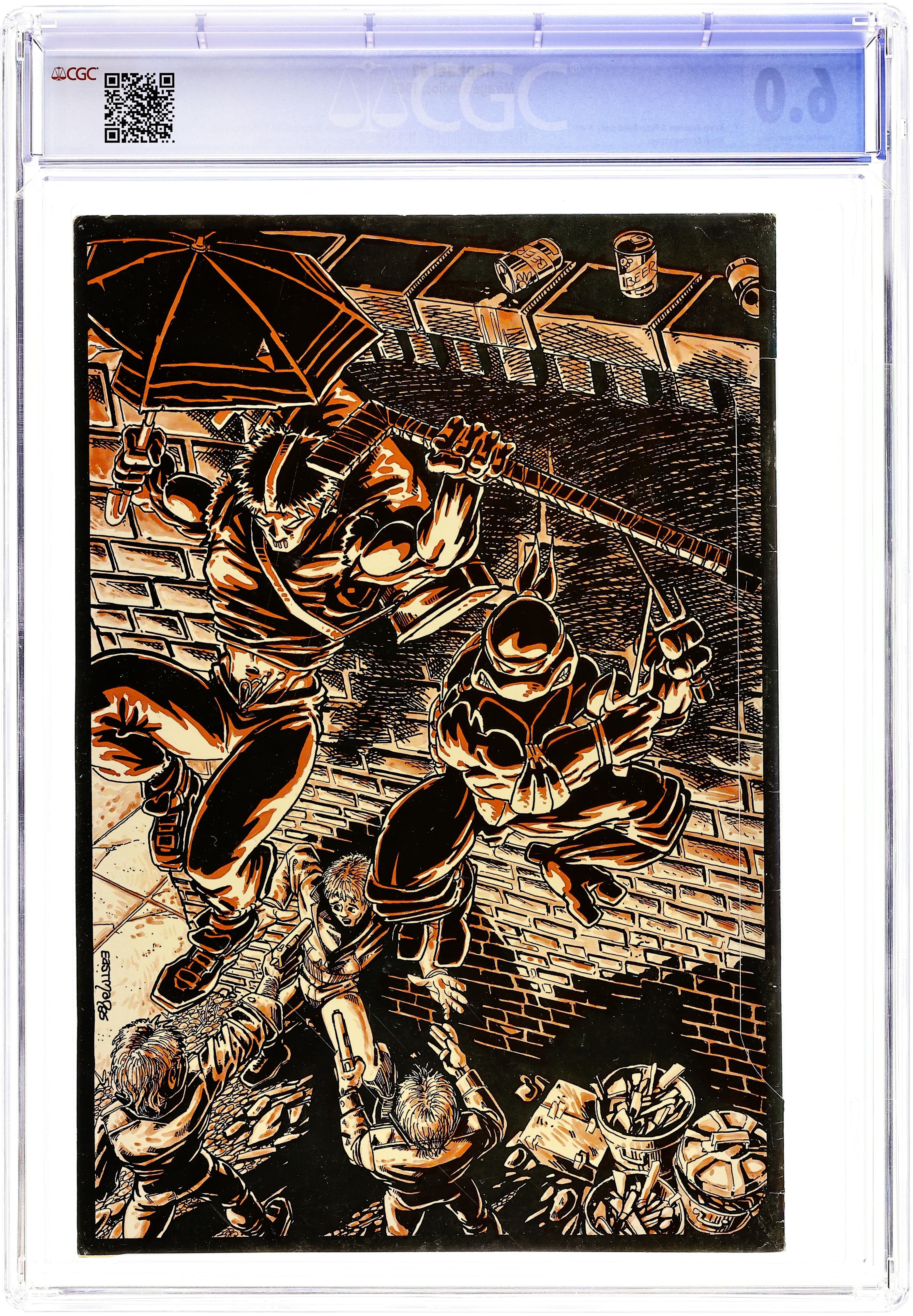 Ended Jul 17 2025 Winning Bid $127 1st printing (2 Color Cover) - 1st Teenage Mutant Ninja Turtles one-shot spin-off and contains first drawing of the Turtles as a group from 1983. 7 1/2-in. x 11-in. Cover price $1.50. Grade: CGC 6.0 explanation of grade Condition: Used (collectible)