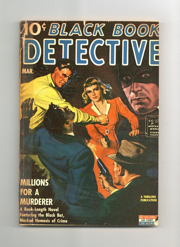 The Black Bat in "Millions for a Murderer" by "G. Wayman Jones" (Norman Daniels); "A Tip for the Waitress" by Joe Archibald and "Blue Coupe" by C.S. Montanye. Pulp magazine format; black and white; 112 newsprint pages. Cover price $0.10. Grade: Good explanation of grade Condition: Used (collectible)