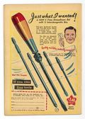 Jack Kamen-ish art and stories. "Dial 'C' for Corpse"; A cataleptic has a phone installed in his coffin; He dies and, after one month, calls his wife who is planning to marry another man; This man drives a stake into the buried man. "Recipe for Horror"; A scientist asks a detective to find out who is stealing blood from him; They suspect the assistant but it's really a vampire masquerading as a pretty woman. "Gift of Doom" text story by John Martin. "If the Coffin Fits..."; A man named Mr. Death tries to sell a coffin from a coffin catalog to an oil tycoon; He kicks him out of his office but meets the man again and again. "Date with the Devil"; A singer with a scarred face hides behind a mask; He falls in love with another singer. His manager rips his mask off while he's singing and everyone sees his face. 36 pgs., full color. $0.10. Cover price $0.10. Grade: GD+ 2.5 explanation of grade Condition: Used (collectible)