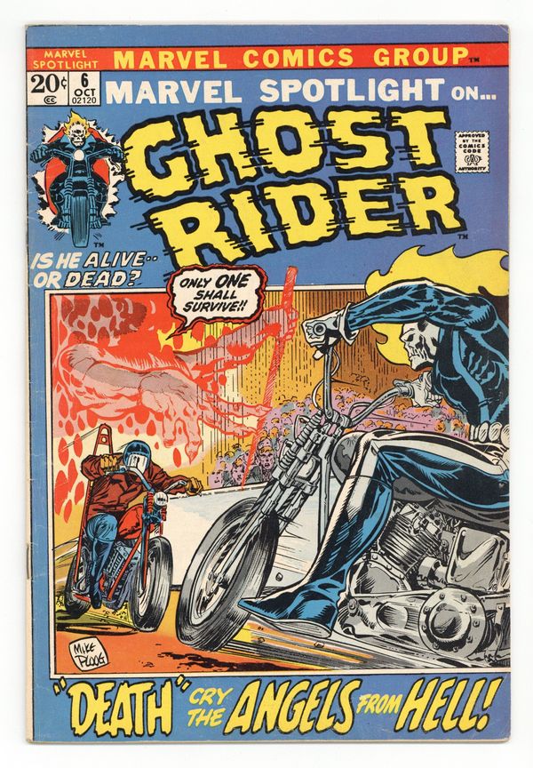 Cover art by Mike Ploog. Angels From Hell, script by Gary Friedrich, pencils by Mike Ploog, inks by Frank Chiaramonte; Ghost Rider battles a gang of bikers called Satans Saints; after GR defeats them, their leader asks him to join the club; 2nd appearance of Ghost Rider (origin retold). 36 pages, full color. Cover price $0.20. Grade: VG+ 4.5 explanation of grade Condition: Used (collectible)