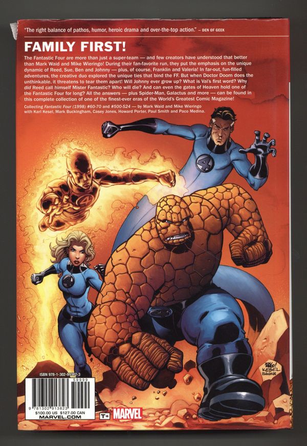 Mark Waid and Mike Wieringo deliver some of the most daring and humorous adventures the Fantastic Four have ever seen! Giant bugs! Living equations! Johnny Storm, C.E.O.! Exploding unstable molecules! The secret behind the Yancy Street Gang! And Doctor Doom's plans are truly unthinkable! Victor will push the FF beyond their limits - and when his actions lead to the death of one of their own, they'll storm the gates of Heaven to save their beloved teammate! Plus: Spider-Man and the Human Torch take on Hydro-Man! But with the Fantastic Four's reputation in tatters, is associating with a misunderstood wall-crawler really wise? And when Manhattan finds itself surrounded by a fleet of miles-high alien spacecraft, it's time for the Fantastic Four to do what they do best!