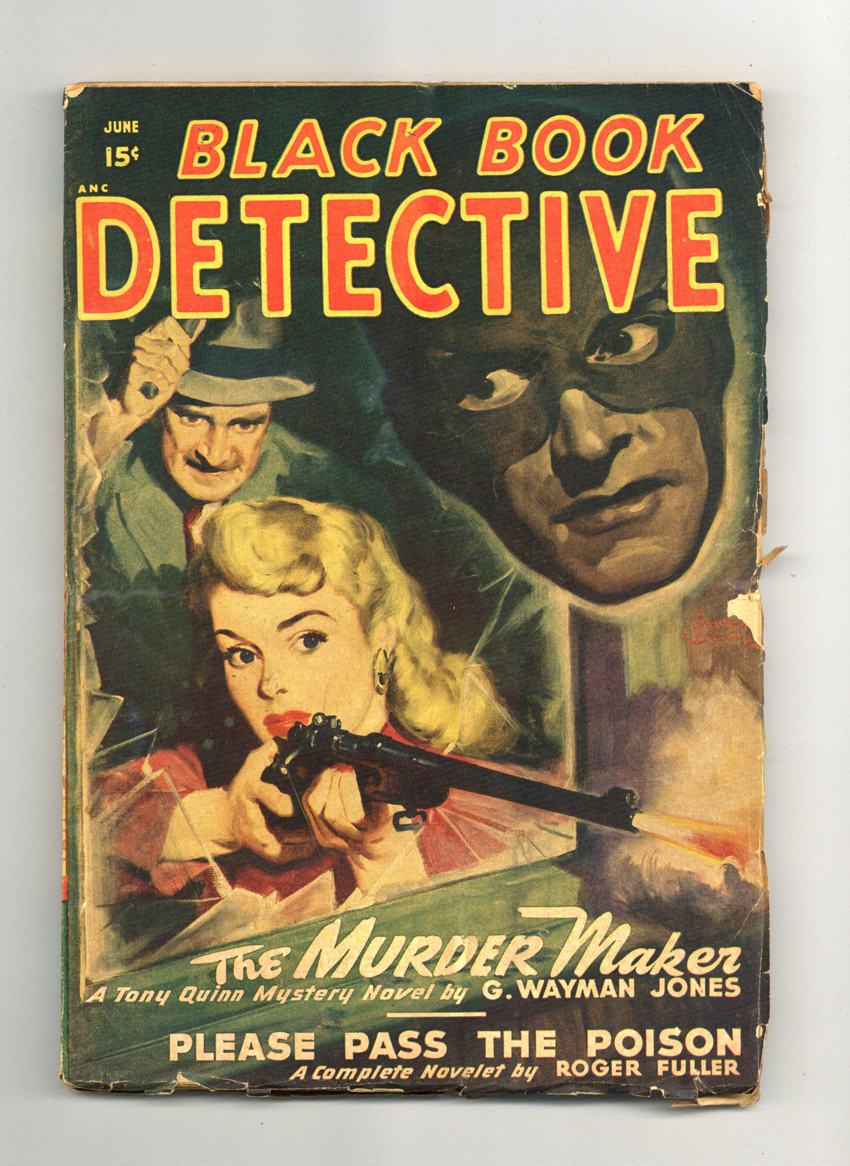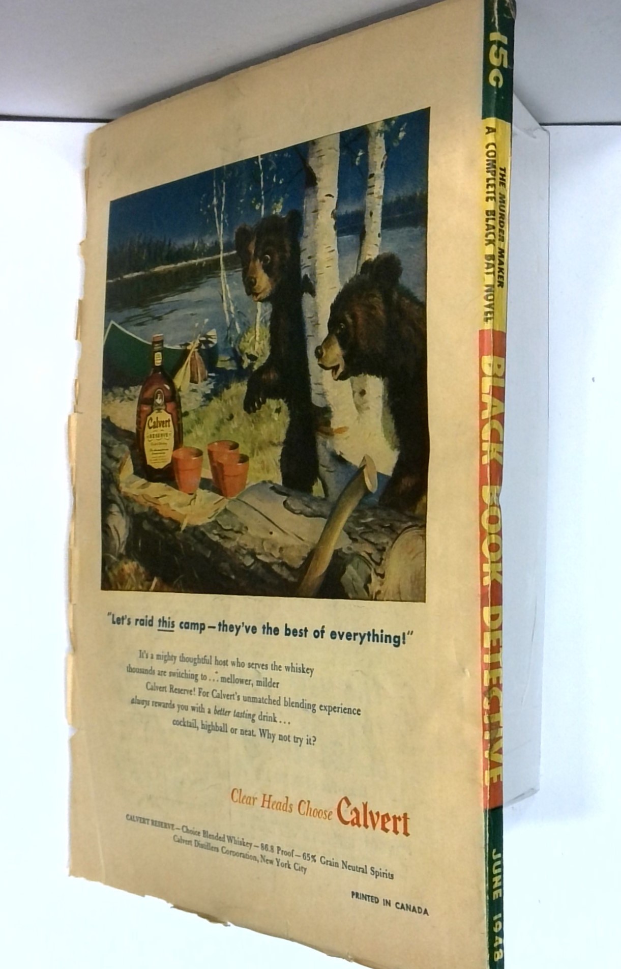 The Black Bat in "The Murder Maker" by "G. Wayman Jones" (Norman Daniels); "Please Pass the Poison" by Roger Fuller; "The Cursed Millions" by Carter Critz; "No Reprieve for the Killer" by Robert Leslie Bellem; "A Killer Flies High" by Robert Sidney Bowen; and "Who's Got the Dummy" by H.C. Butler. Pulp magazine format; black and white; 112 newsprint pages. Cover price $0.15. Grade: VG+ 4.5 explanation of grade Condition: Used (collectible)