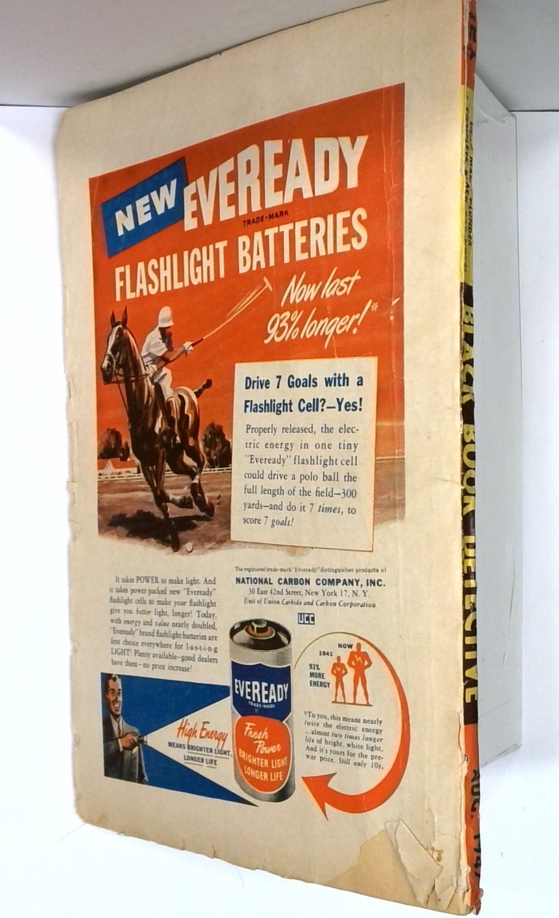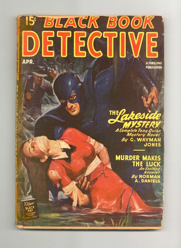 The Black Bat in "The Lakeside Mystery" by "G. Wayman Jones" (Norman Daniels); "Murder Makes the Luck" by Norman A. Daniels; "Measured for Murder" by Nels Leroy Jorgensen; "The Key to Danger" by Wayland Rice; and "Listen for Death" by Roger Fuller. Pulp magazine format; black and white; 112 newsprint pages. Cover price $0.15. Grade: GD 2.0 explanation of grade Condition: Used (collectible)